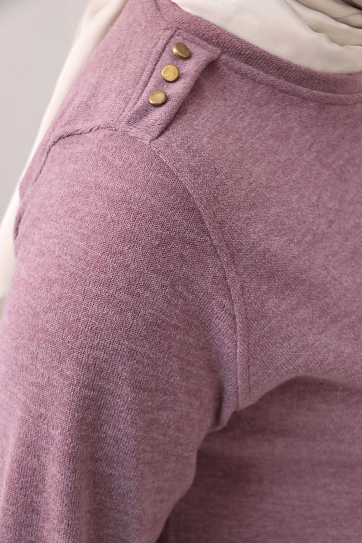 58155 Büyük Beden Kolları Lastikli Perçinli Mir Tunik - Gül Kurusu