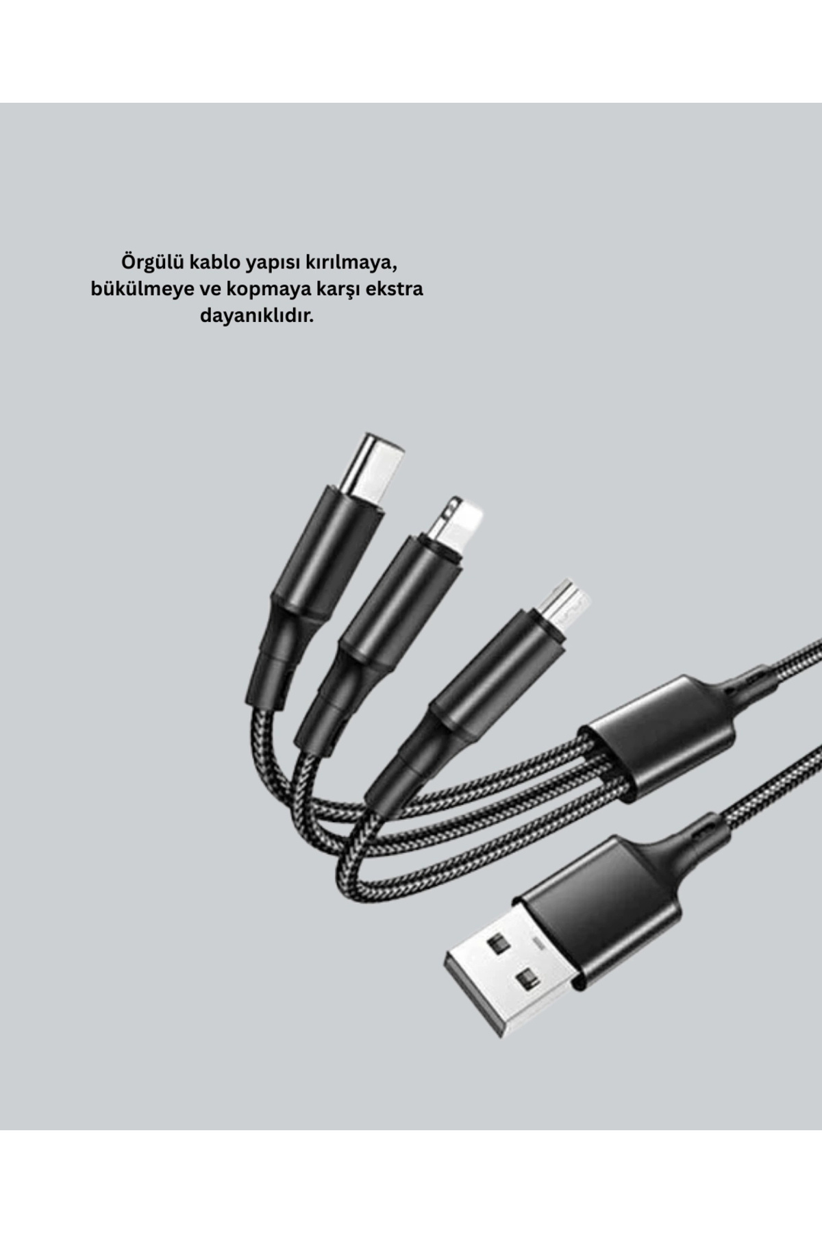 3’ü 1 Arada Hızlı Şarj Kablosu – iOS Android Type-C Uyumlu