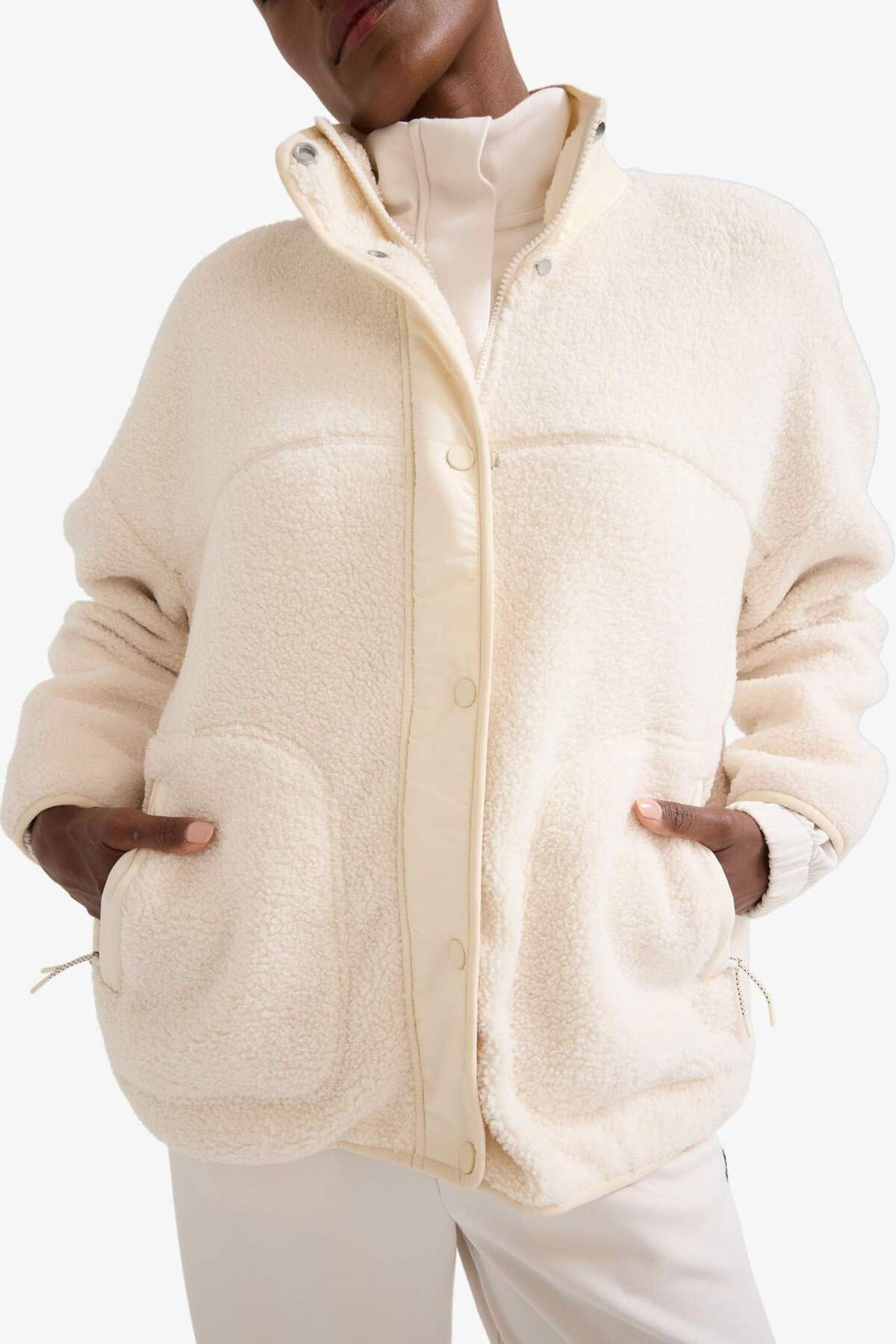 DeFactoFit Oversize Geniş Kalıp İçi Polarlı Peluş Mont, rahat kesimi ve yumuşak iç peluşuyla kış aylarında sıcaklık ve konfor sağlar.