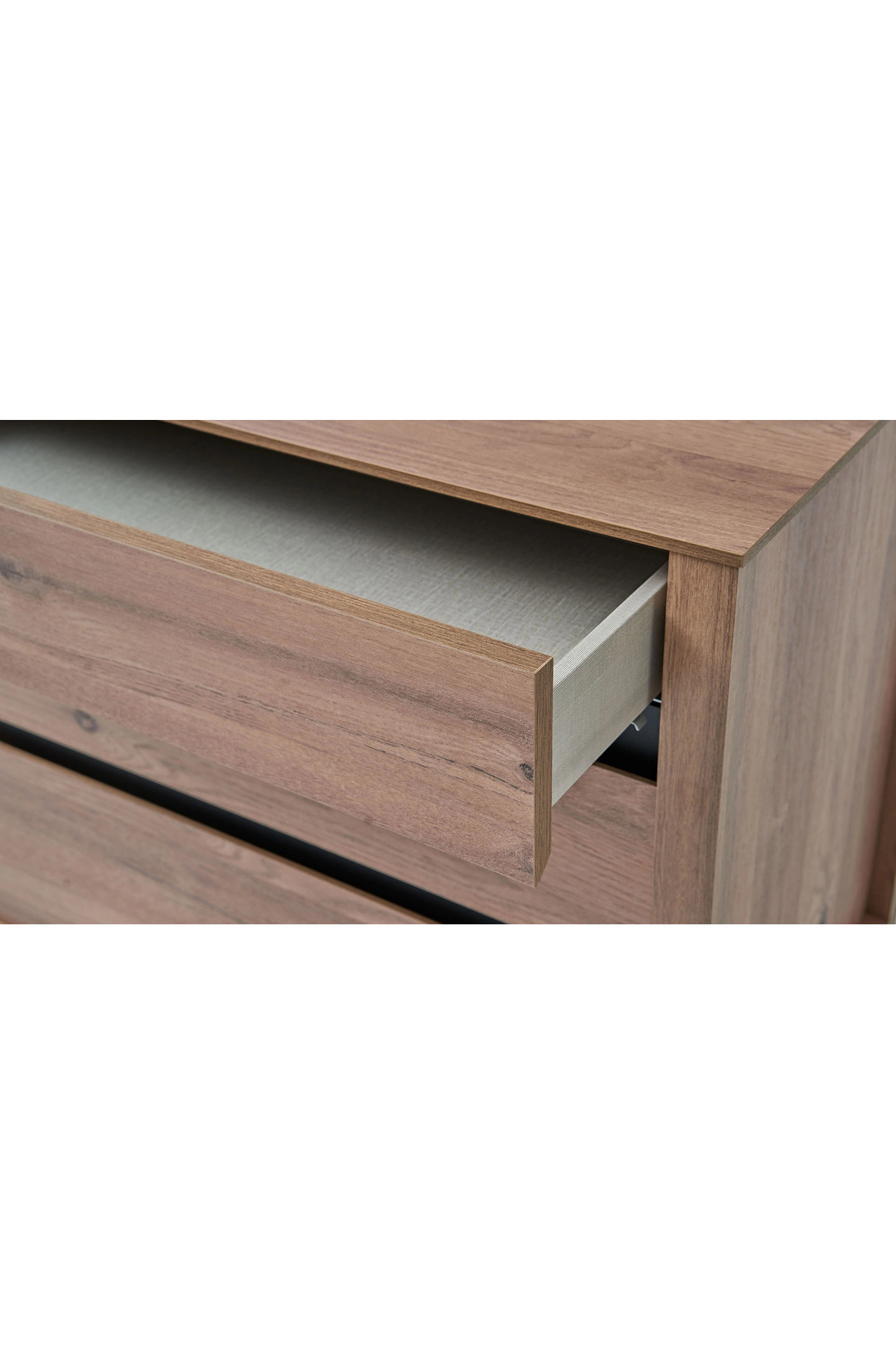 Solid geniş şifonyer, siyah ve açık renkli ahşabın bir araya geldiği tasarımıyla mekanlara modern bir görünüm kazandırıyor.