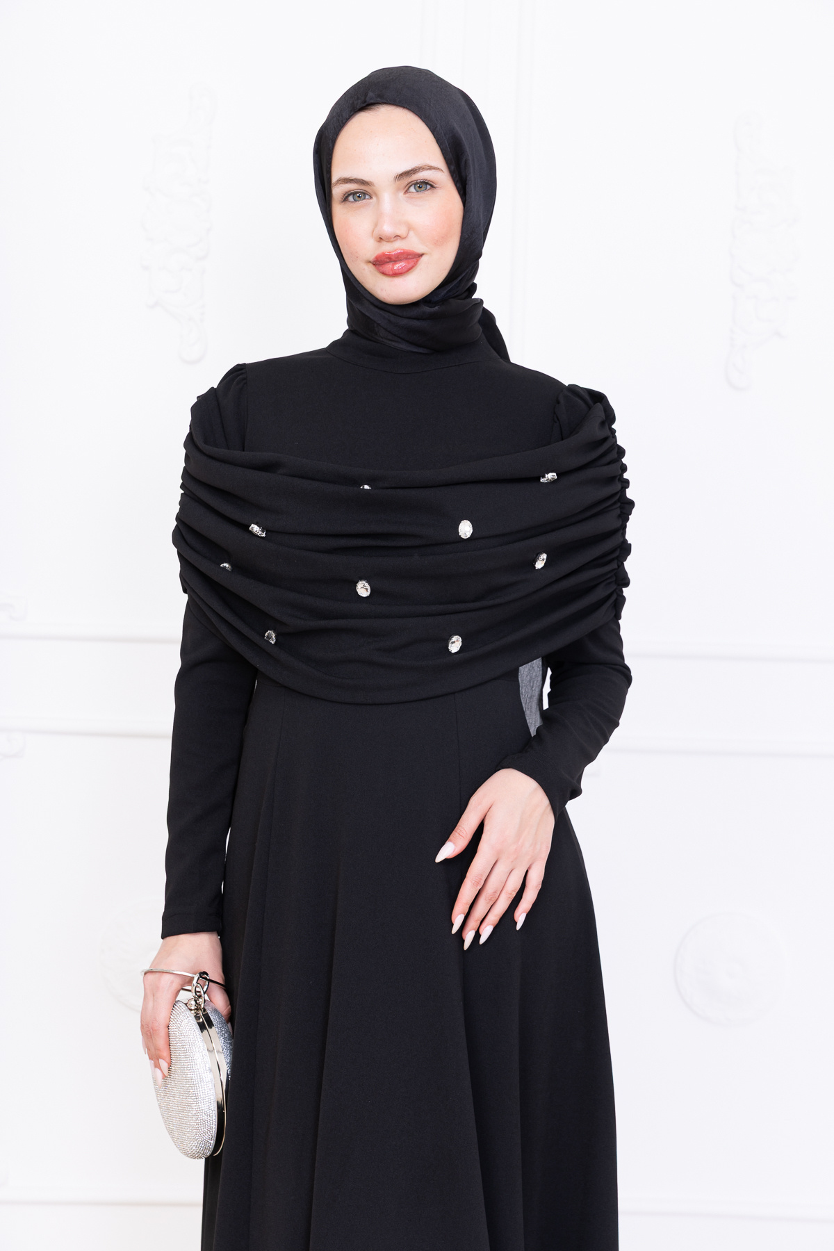 - Yetişkin kadınlar için özel olarak tasarlanmış, şık ve modern bir tesettür abiye elbise.
