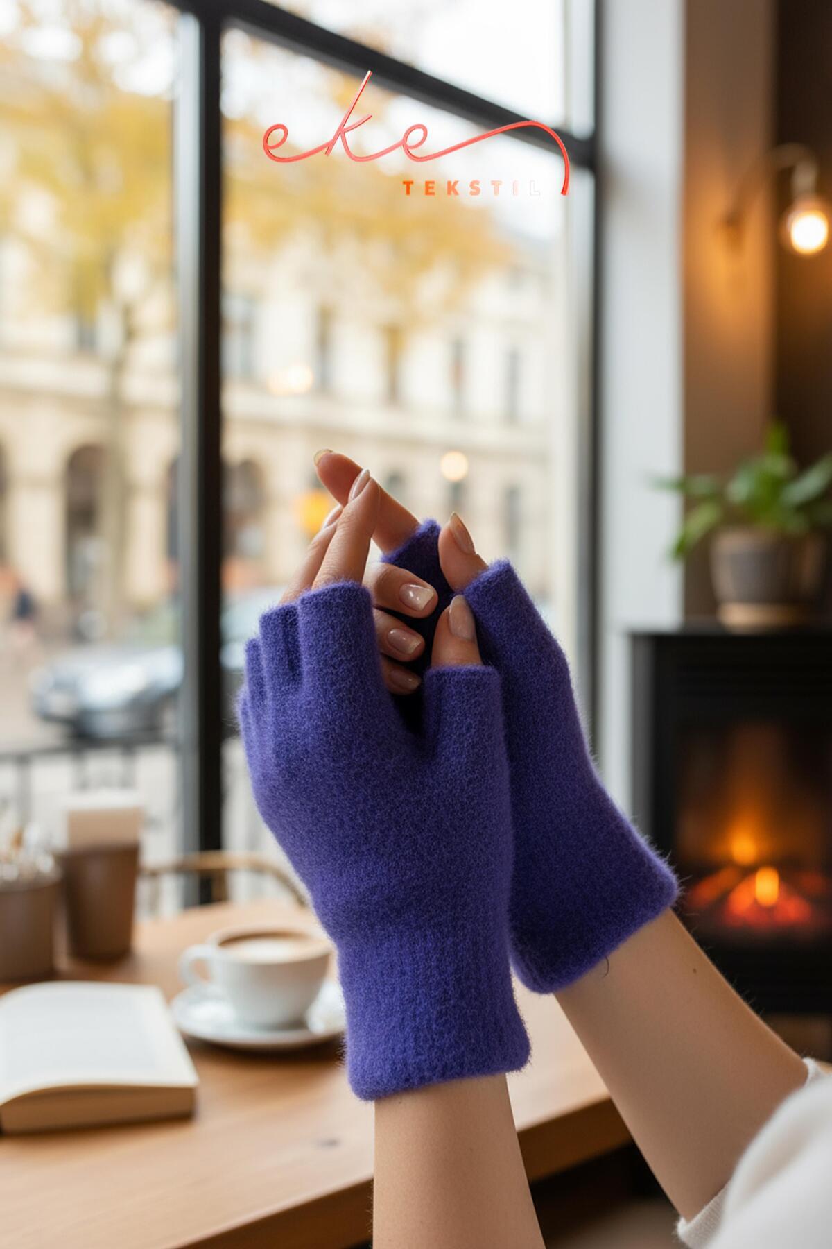 Kadın Peluş Kısa Parmak Eldiven, soğuk havalarda ellerinizi sıcak tutarken ,tarzınıza şıklık katar ve dokunmatik ekran kullanımını da kolaylaştırır.