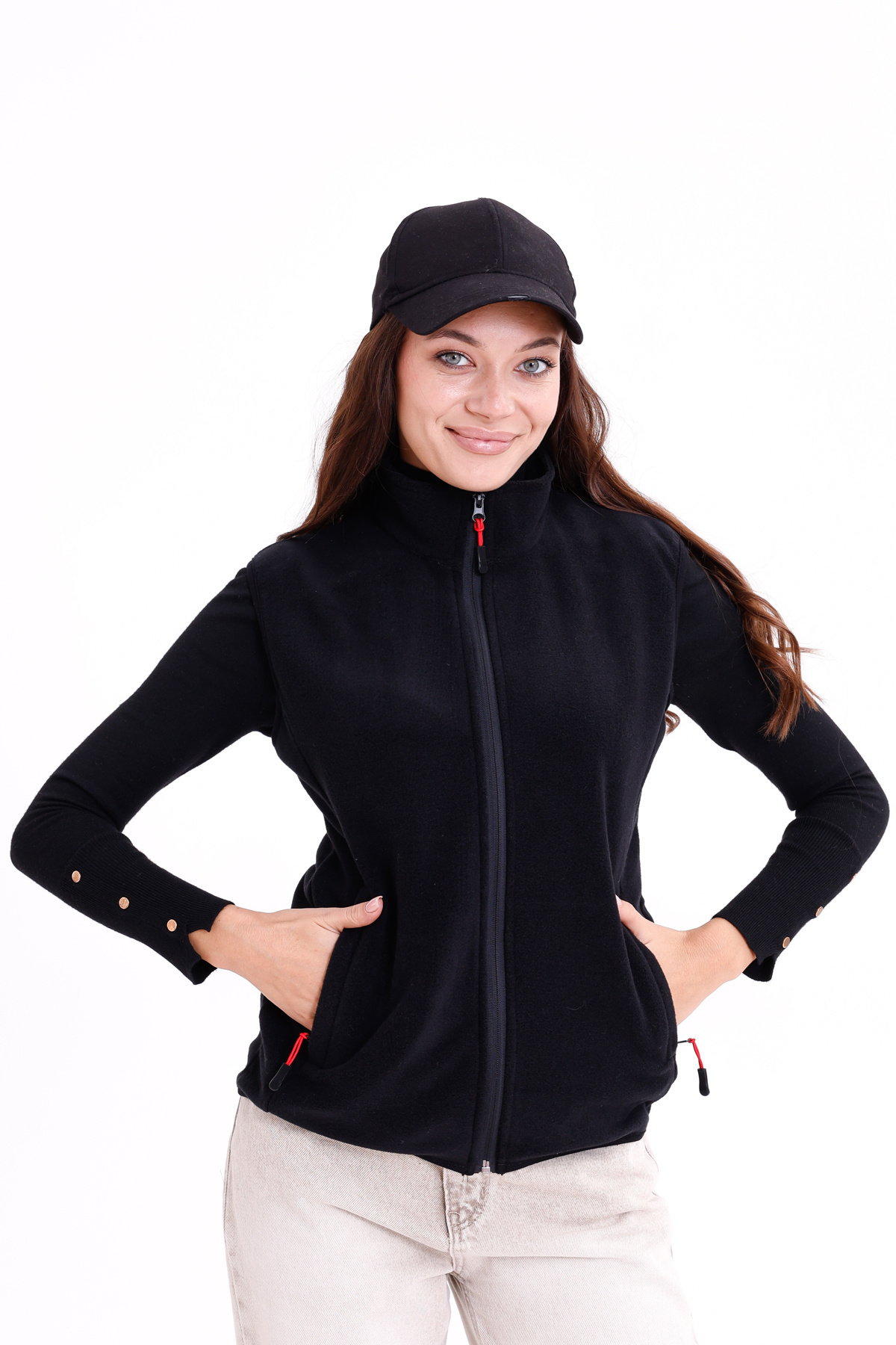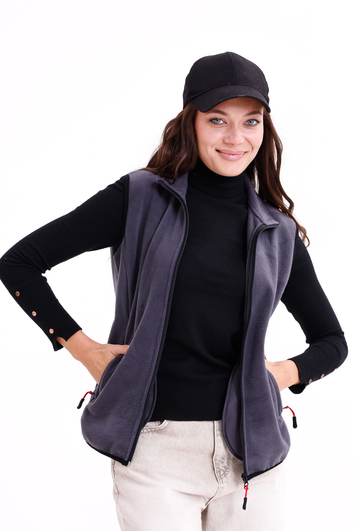 Kadın Slim Fit Tam Fermuarlı Polar Yelek