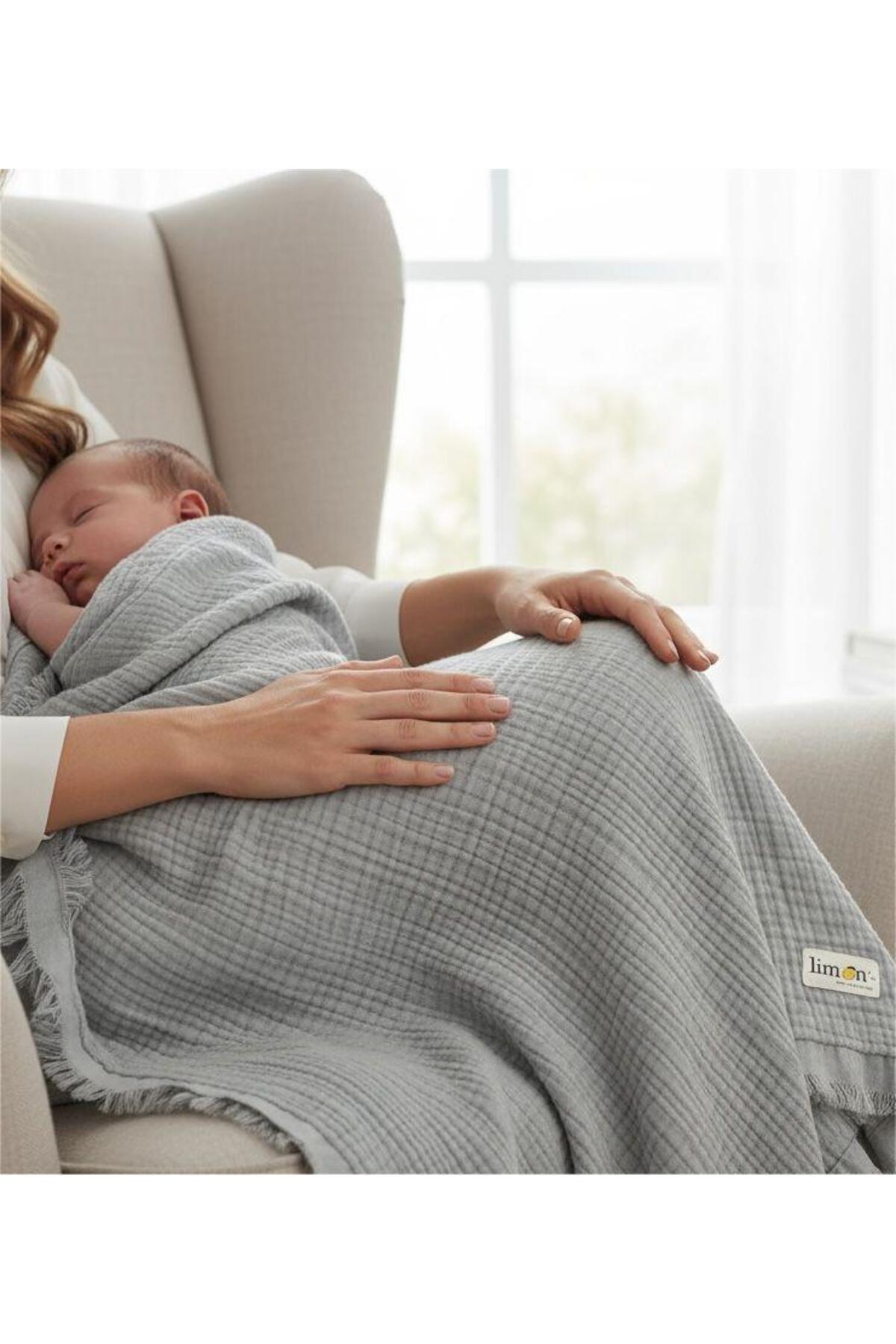 Limons Baby 4 Katlı Müslin Bebek Battaniyesi, doğallık ve zarafeti bir araya getirerek bebeğinizin her anına yumuşacık bir dokunuş katıyor.