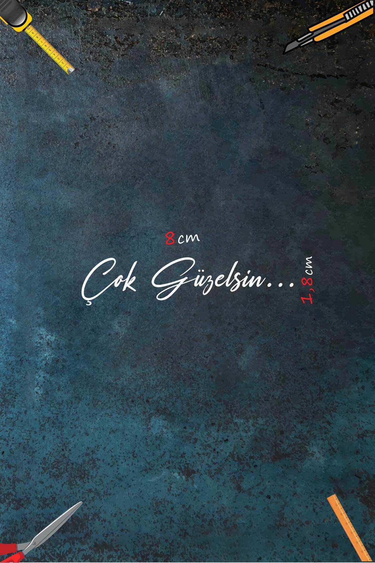 Çok Güzelsin Güneşlik Ayna Yazısı Araba Sticker Beyaz 8x1,8 cm