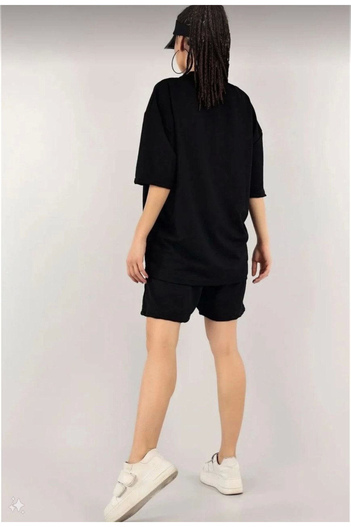 Kadın Unisex Nakış İşlemeli Şort Takım - Siyah