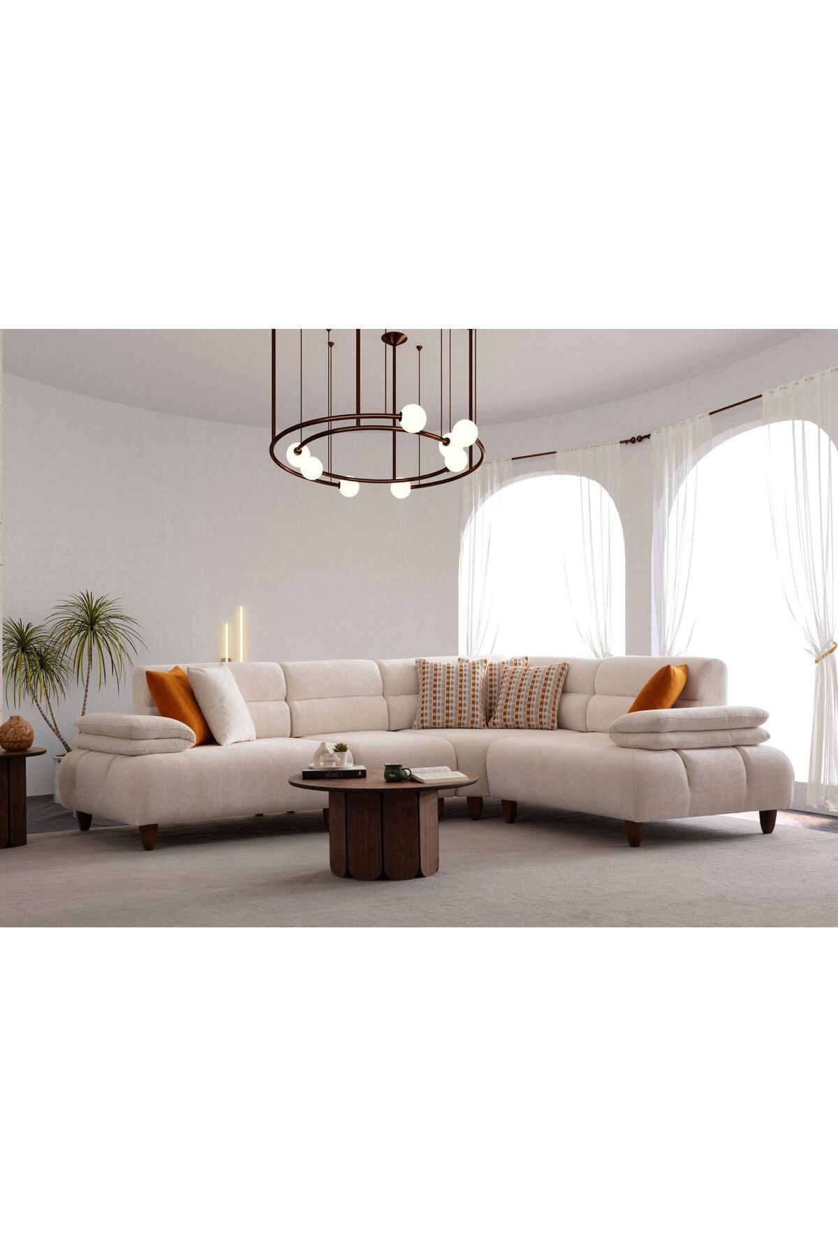 - Modern tasarımı ile evinizin dekorasyonuna şıklık katan Midas köşe koltuk takımı, 290 x 280 cm boyutlarında geniş bir oturma alanı sunar.