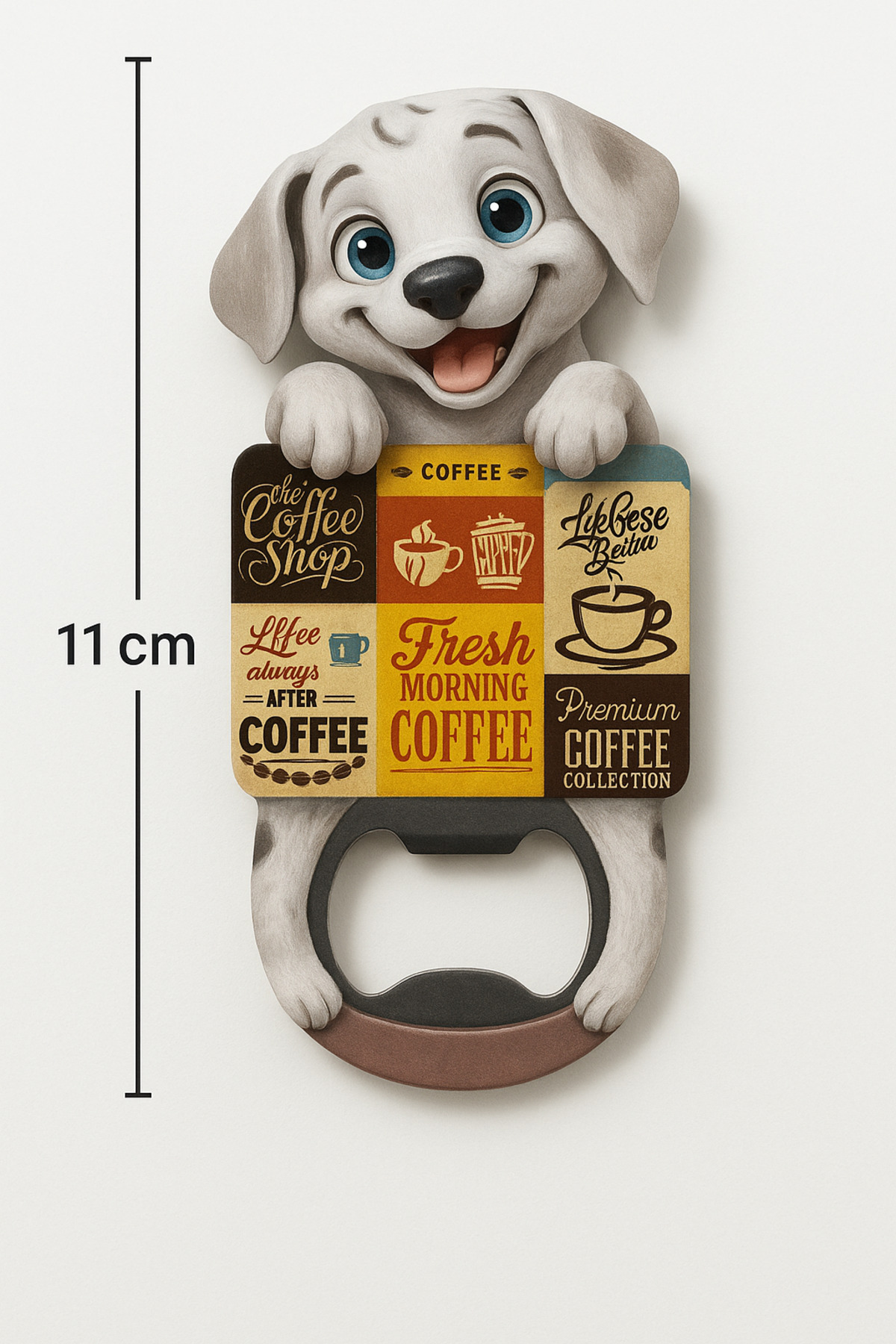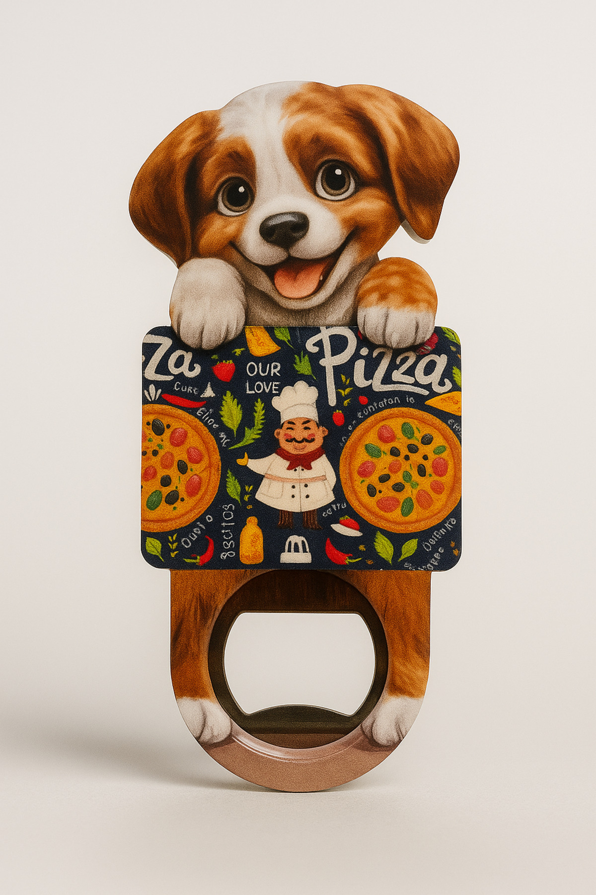 Mutfağınıza İtalyan esintisi ve tatlı bir neşe katın! 🇮🇹🐶Bu köpek figürlü mıknatıslı şişe açacağı, pizza temalı eğlenceli tasarımıyla hem işlevsel hem de dekoratif bir aksesuar sunar.
