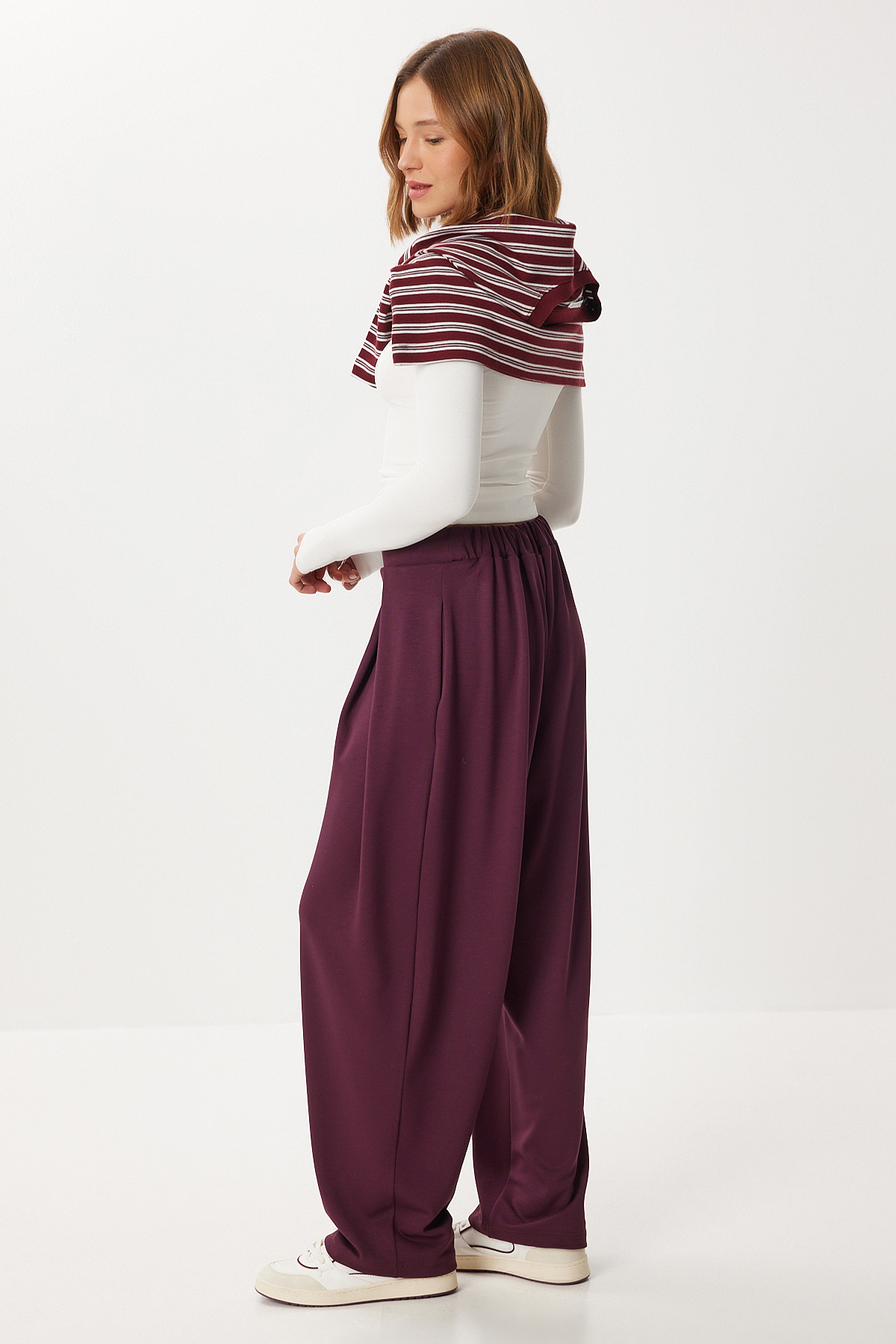 Elastik bel, yan cepli, esnek yapılı, yumuşak dokulu, geniş paça, pileli eşofman altıİçerik: %100 Polyester Ürün Boyu: 105 cm 30° makinede yıkanabilir.