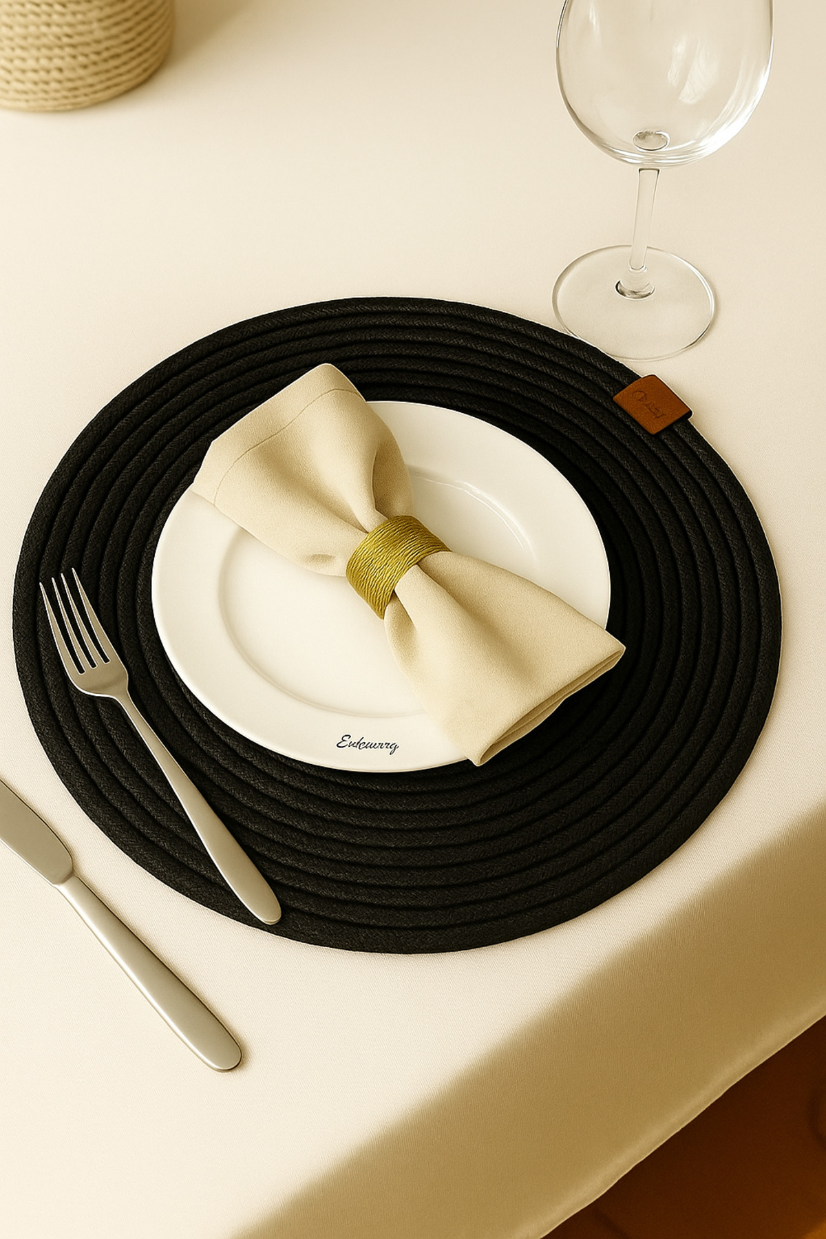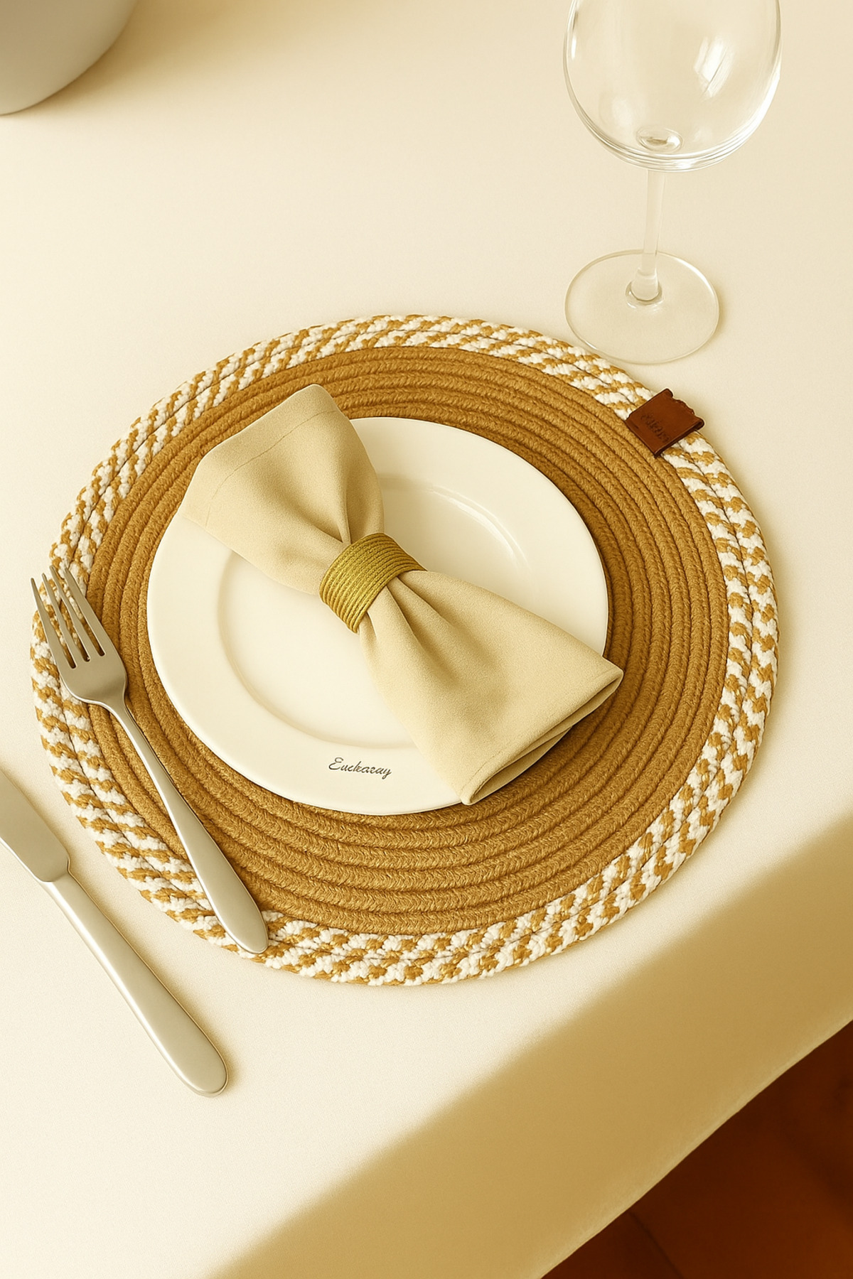 El Yapımı Naturel Jüt Supla | Doğal Hasır Halat Amerikan Servis | El Yapımı Yuvarlak Masa Dekoru