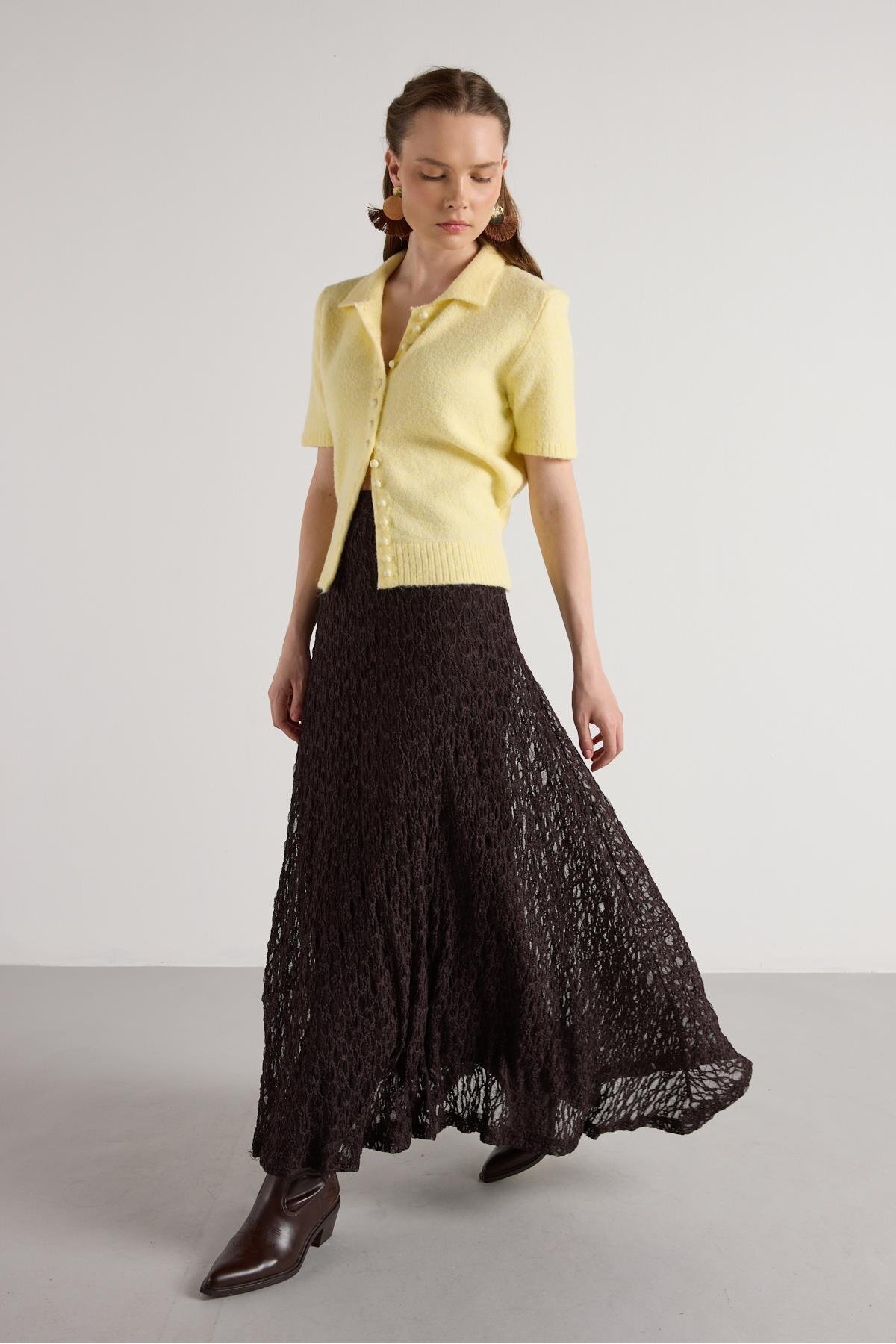 Kadın Kahve Astarlı Uzun Dantel Etek 30052