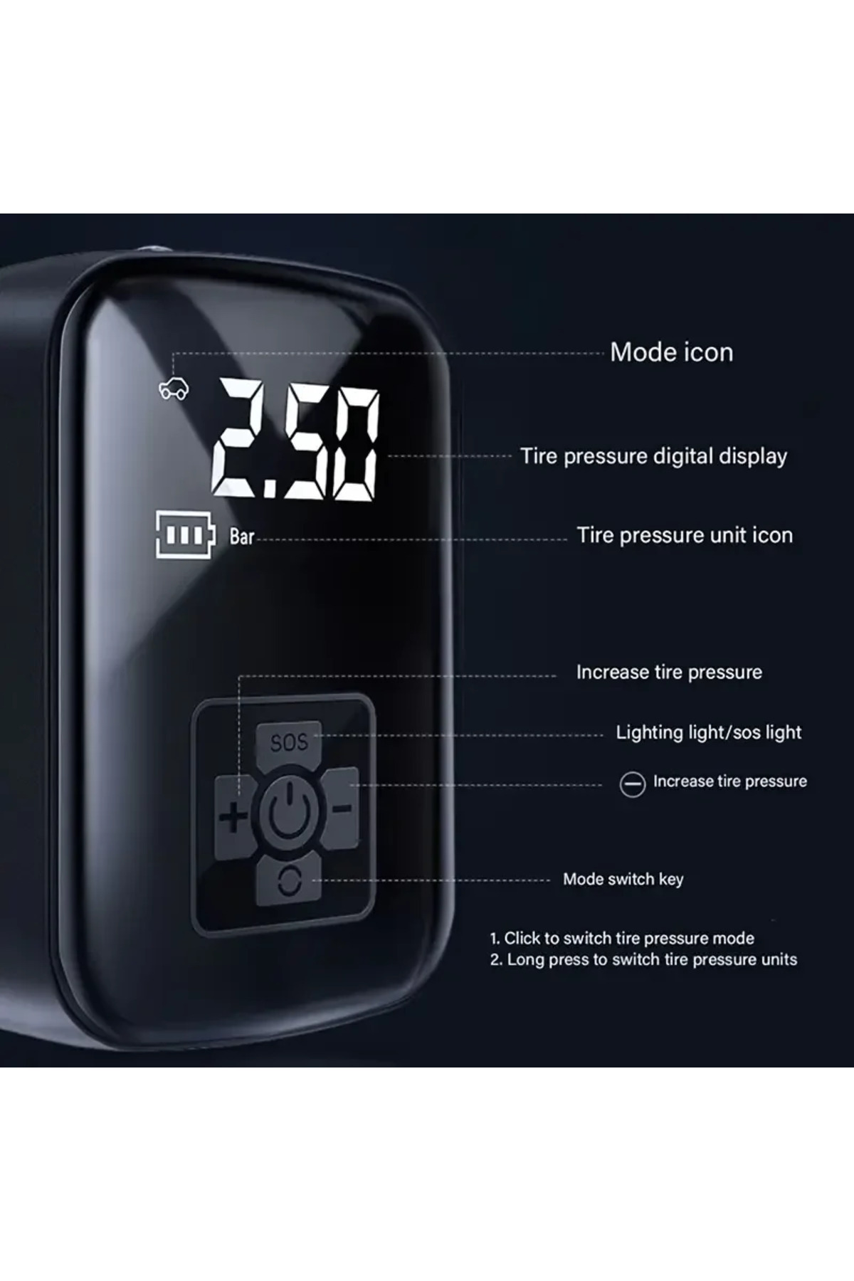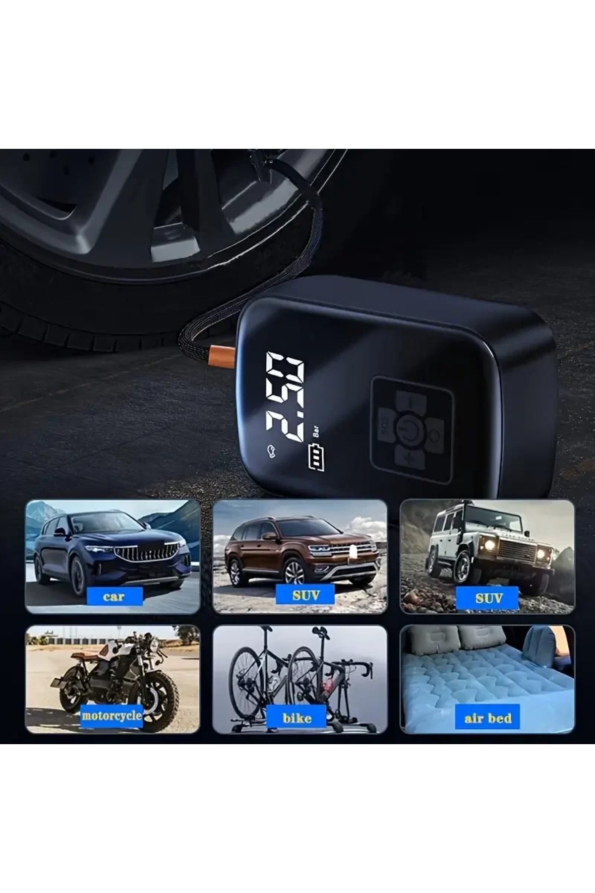 Mini Kablosuz Dijital Taşınabilir Kompresör Araç Lastik Top Şişirme Pompası Hava Kompresörü (4989)