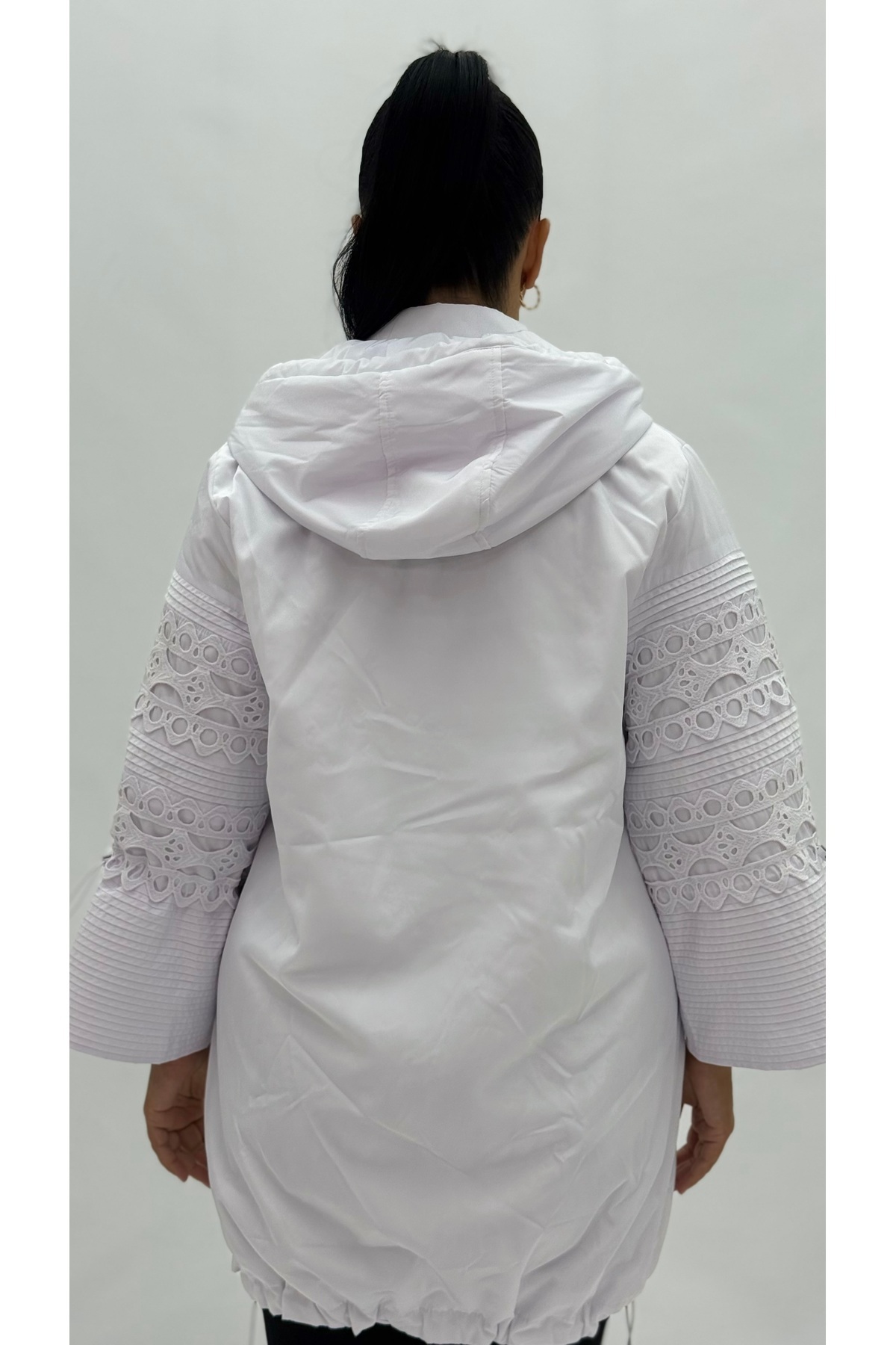 Büyük Beden Kapüşonlu Dantel Detaylı Kadın İnce Yağmurluk Rüzgarlık Mont