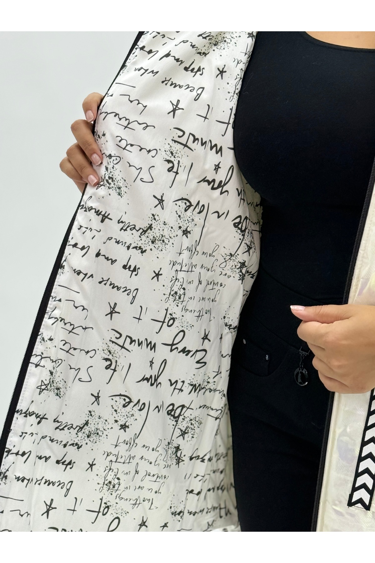 Büyük Beden Cepli Yanardöner Kumaşlı Kapitone Oversize Kadın Mont