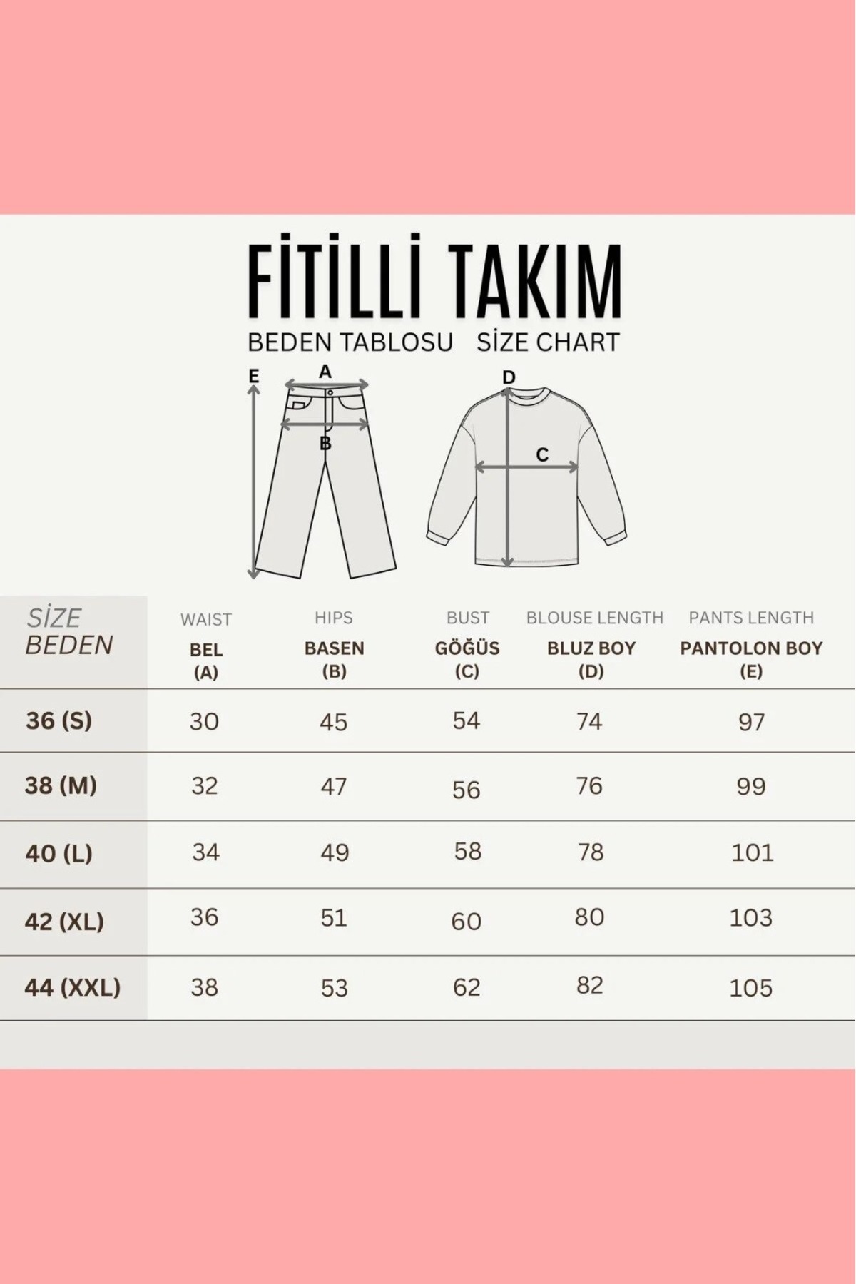 Fitilli İkili Takım (Bluz & Pantolon) Günlük kullanıma uygun, modern çizgiler taşıyan bu takım