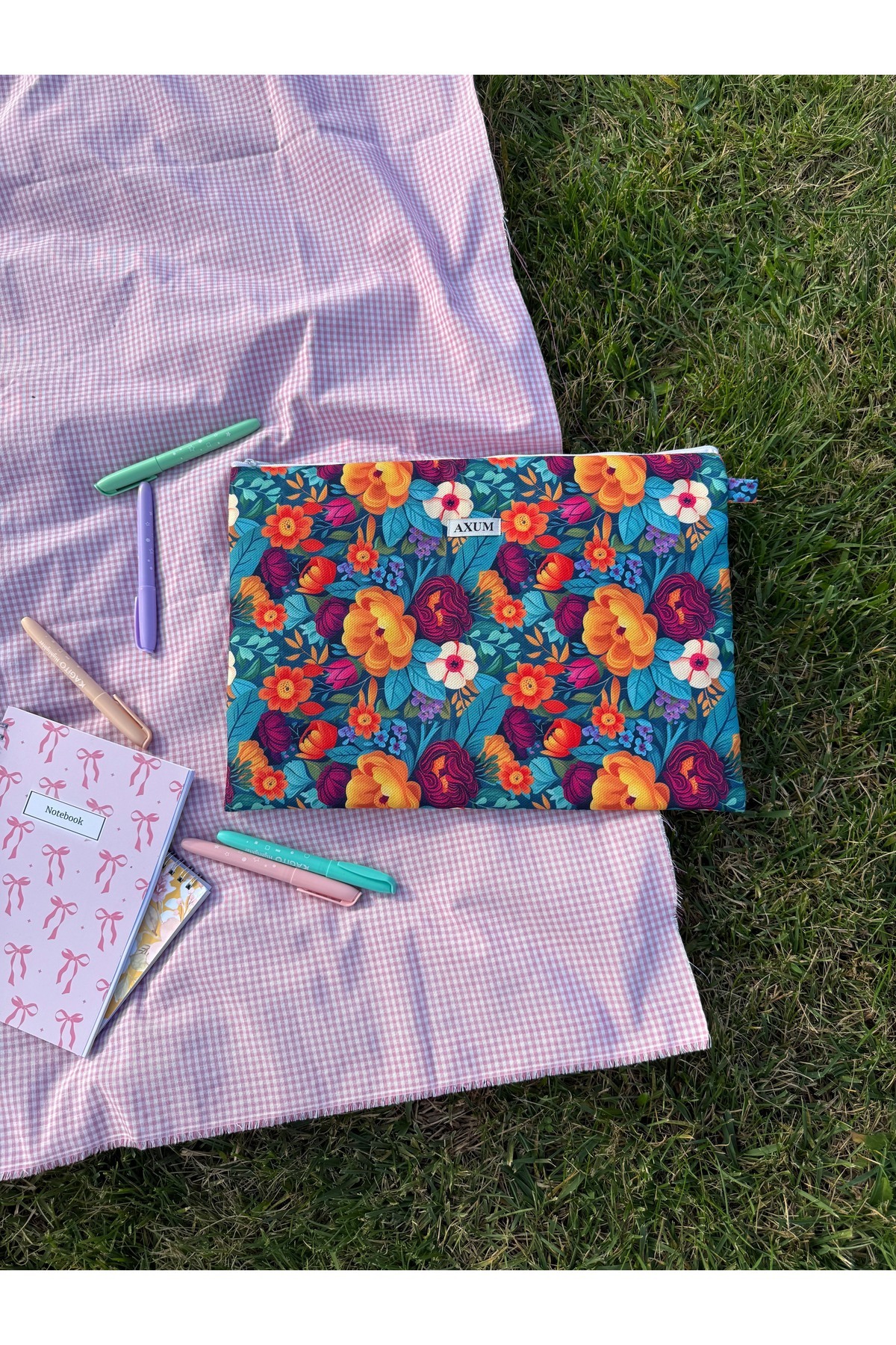Pembe çiçek desenli laptop ve tablet kılıfı, modern tasarımı ve kaliteli dokusuyla cihazınıza zarif bir görünüm kazandırırken çizilme, darbe ve toza karşı üstün koruma sağlar.