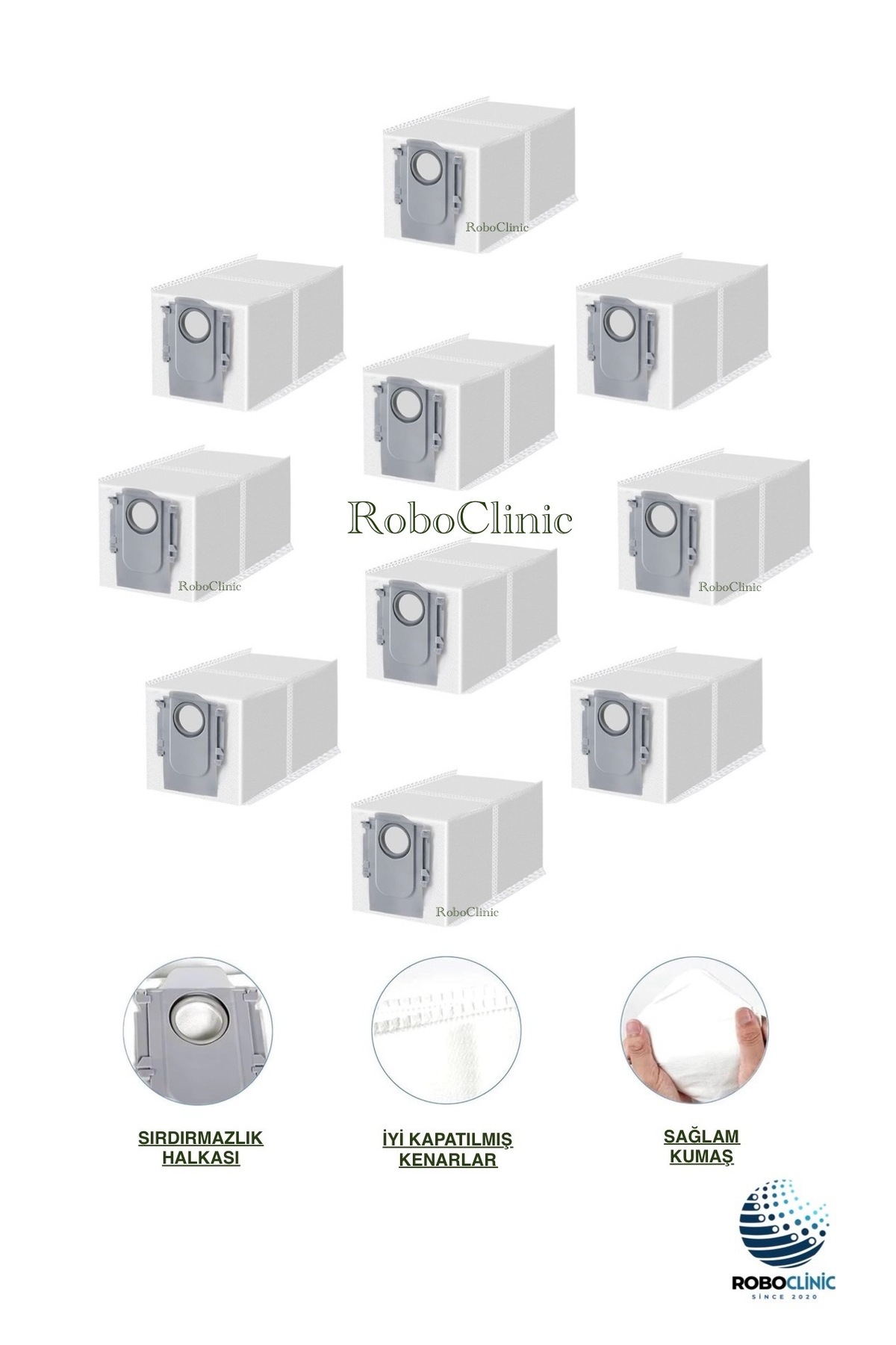 - Roborock Q Revo L robot süpürge ile tam uyumlu, 10 adet yedek çöp torbası seti.