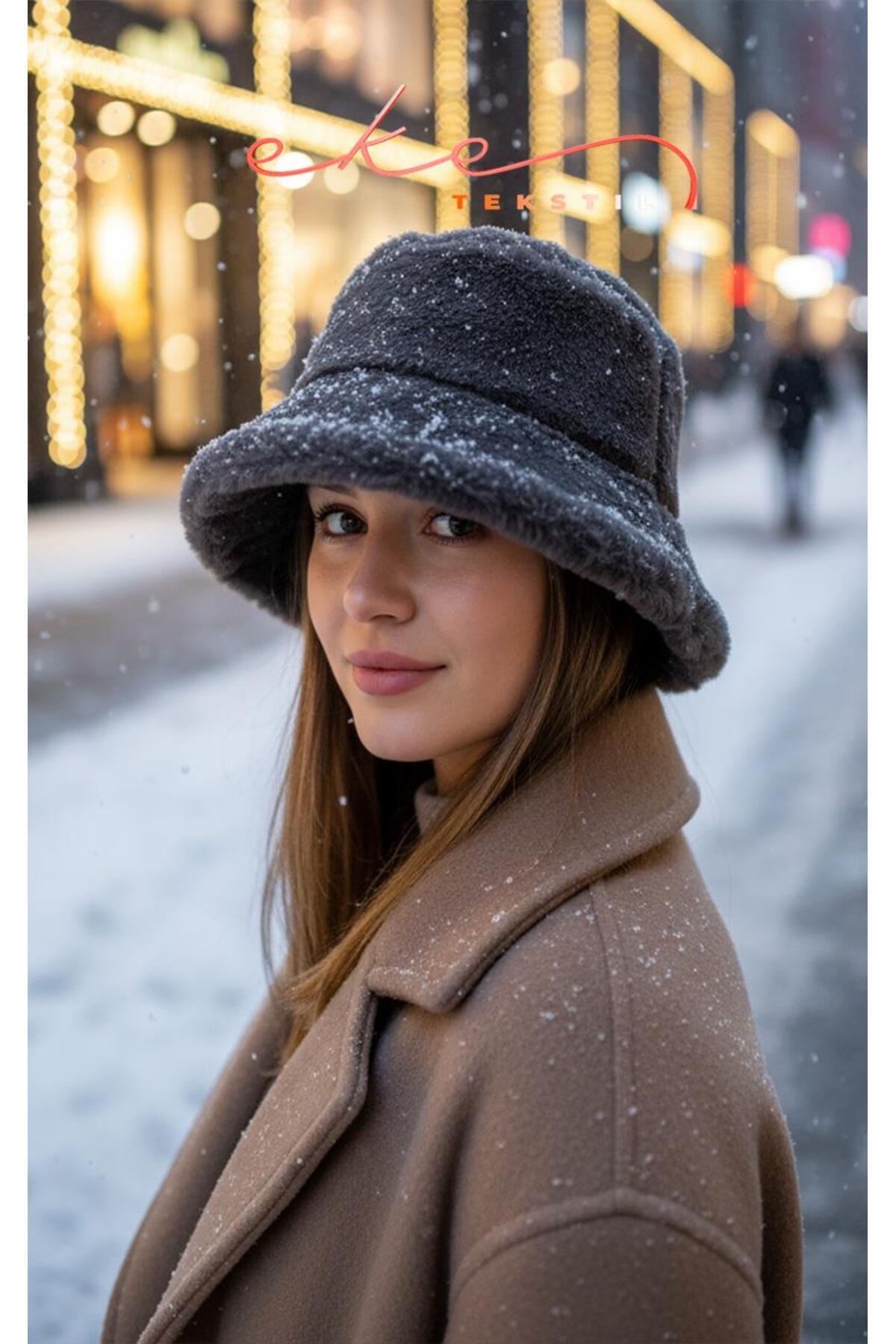 Sadece soğuk havalarda değil, aynı zamanda şık bir görünüm elde etmek istediğiniz her an kullanabileceğiniz peluş bucket şapka, tarzınıza tarz katıyor.