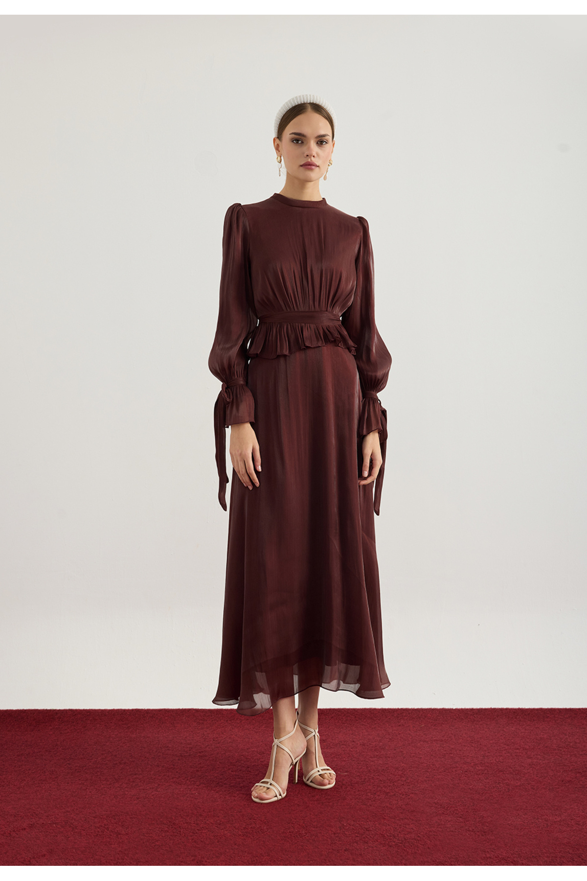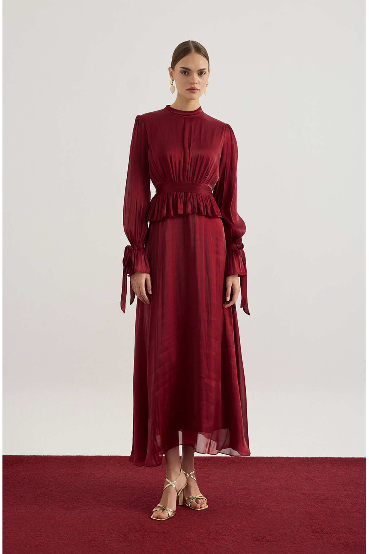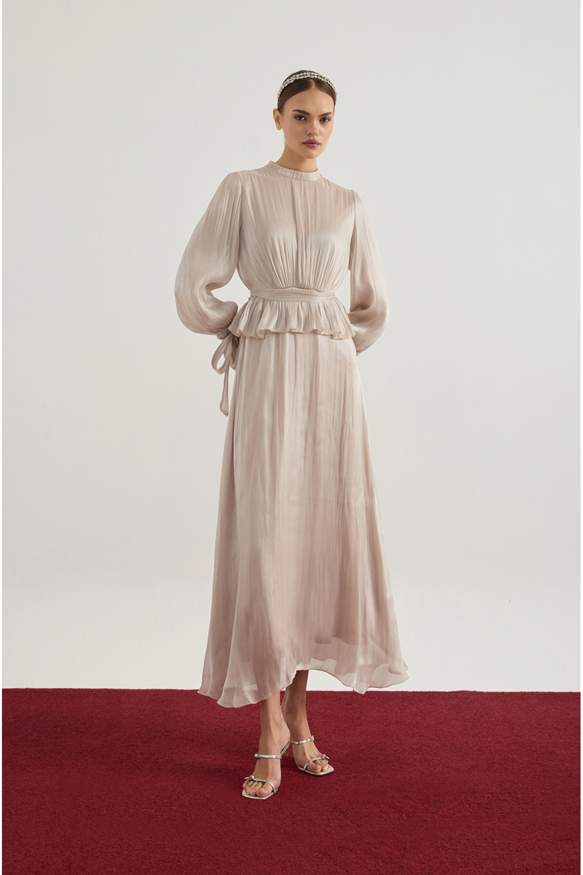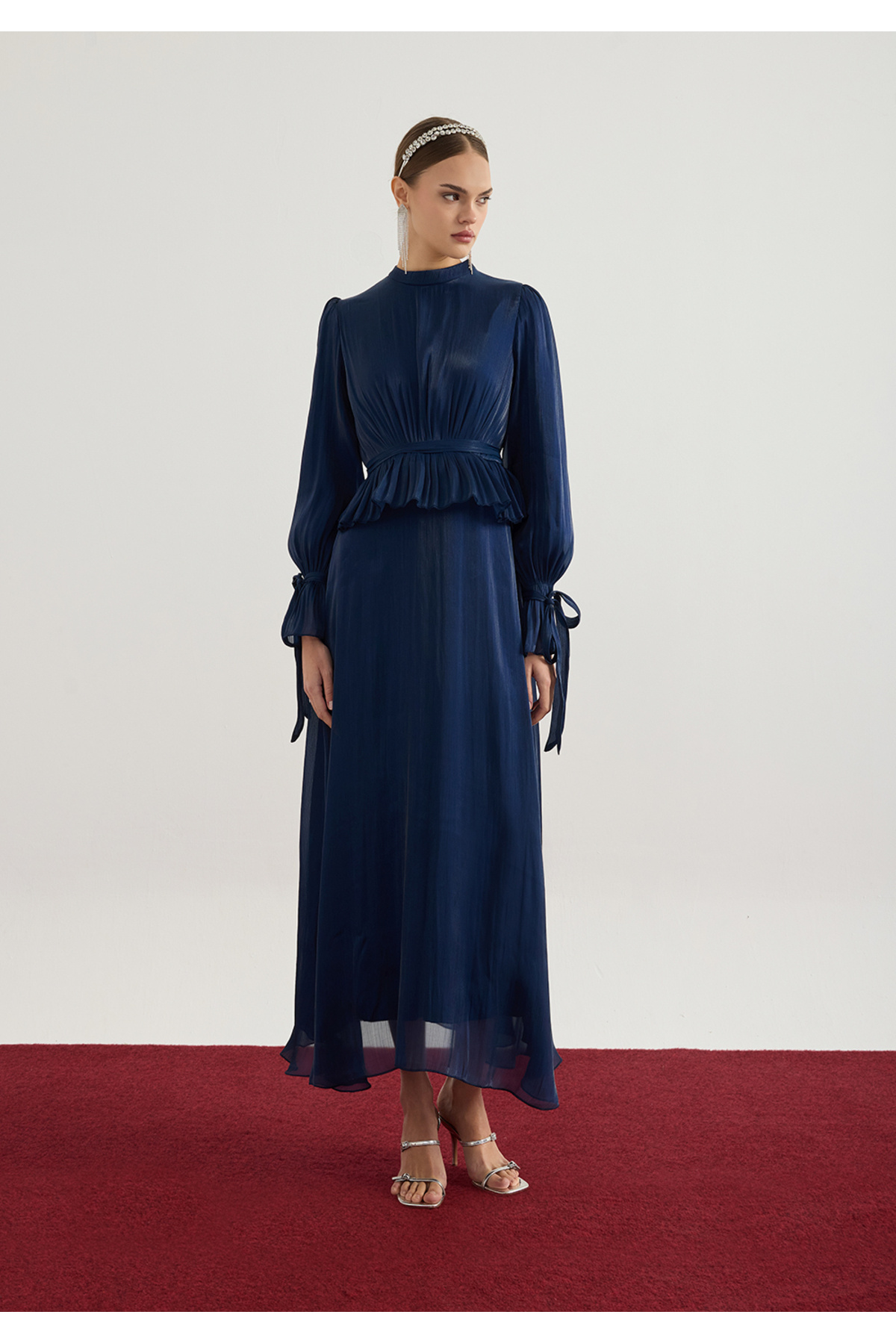 Su Yeşili Büzgü Detaylı Janjan Elbise