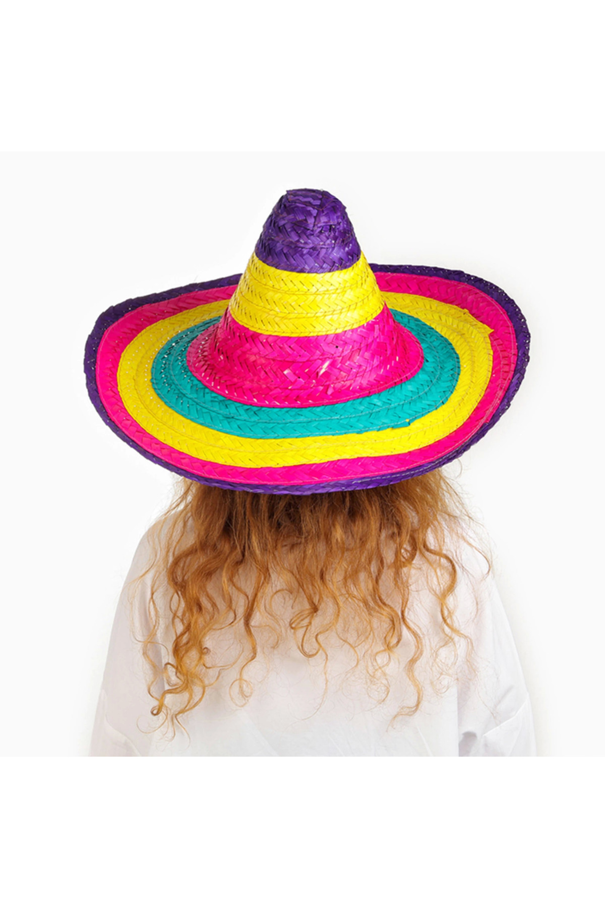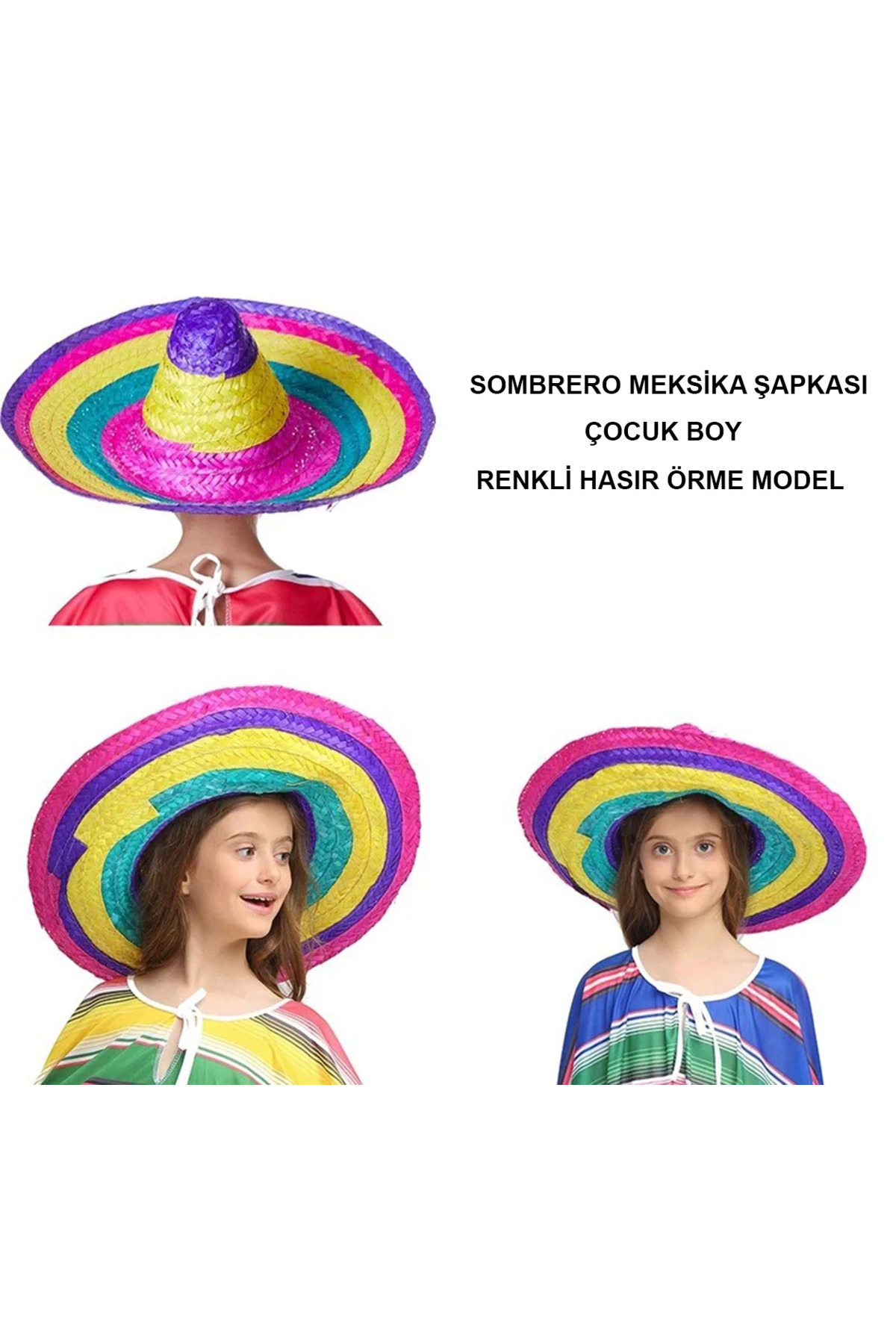 Sombrero Meksika Şapkası Renkli Örme Hasır Çocuk Boy -