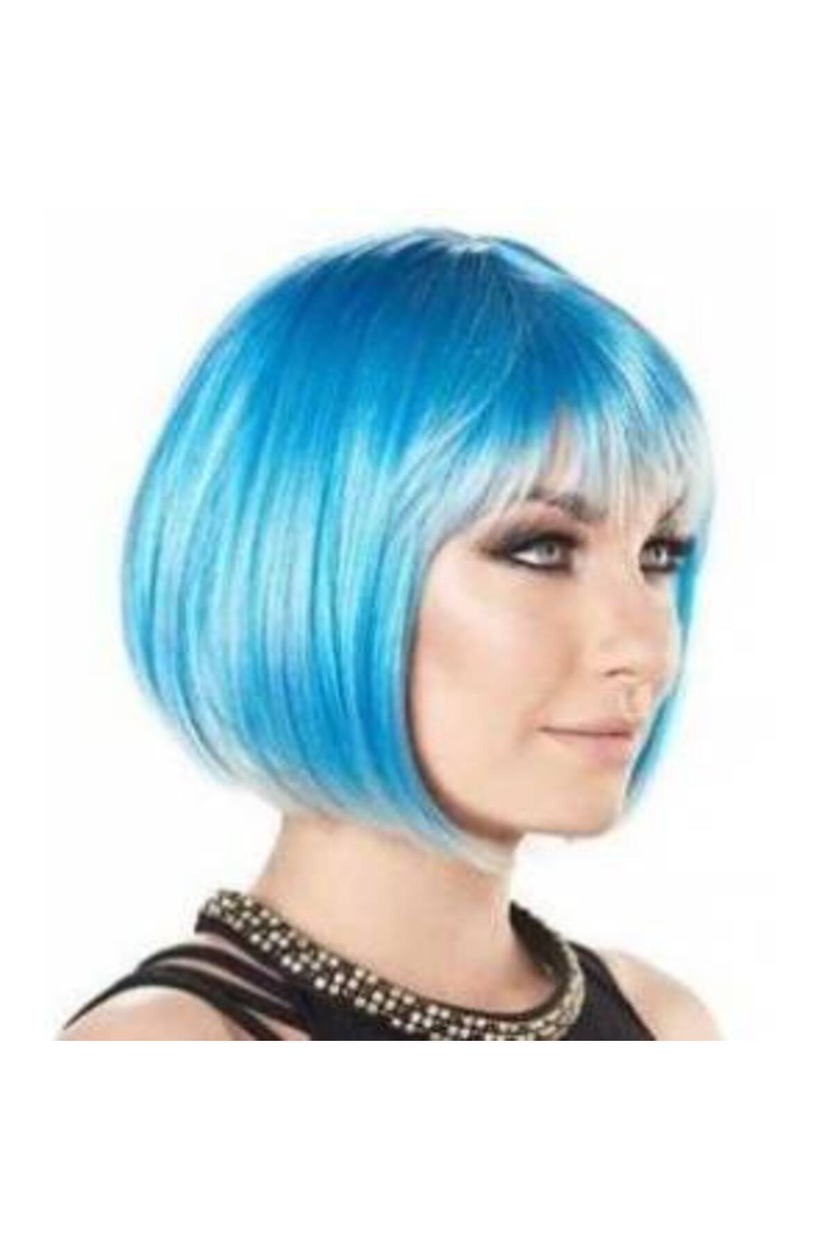 Turkuaz Renk Parti Peruğu Küt Saç (5224)