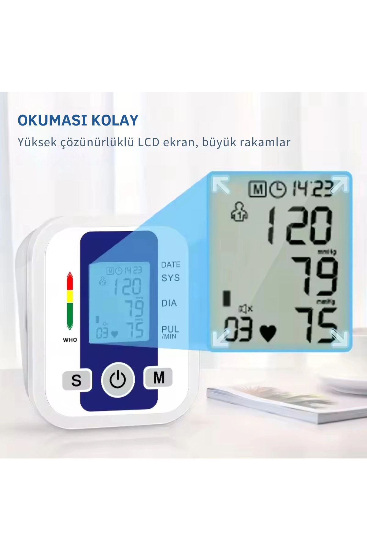 Akıllı Üst Kol Tansiyon Aleti IHB Düzensiz Nabız Uyarısı Tek Tuşla Otomatik Ölçüm Geniş LC