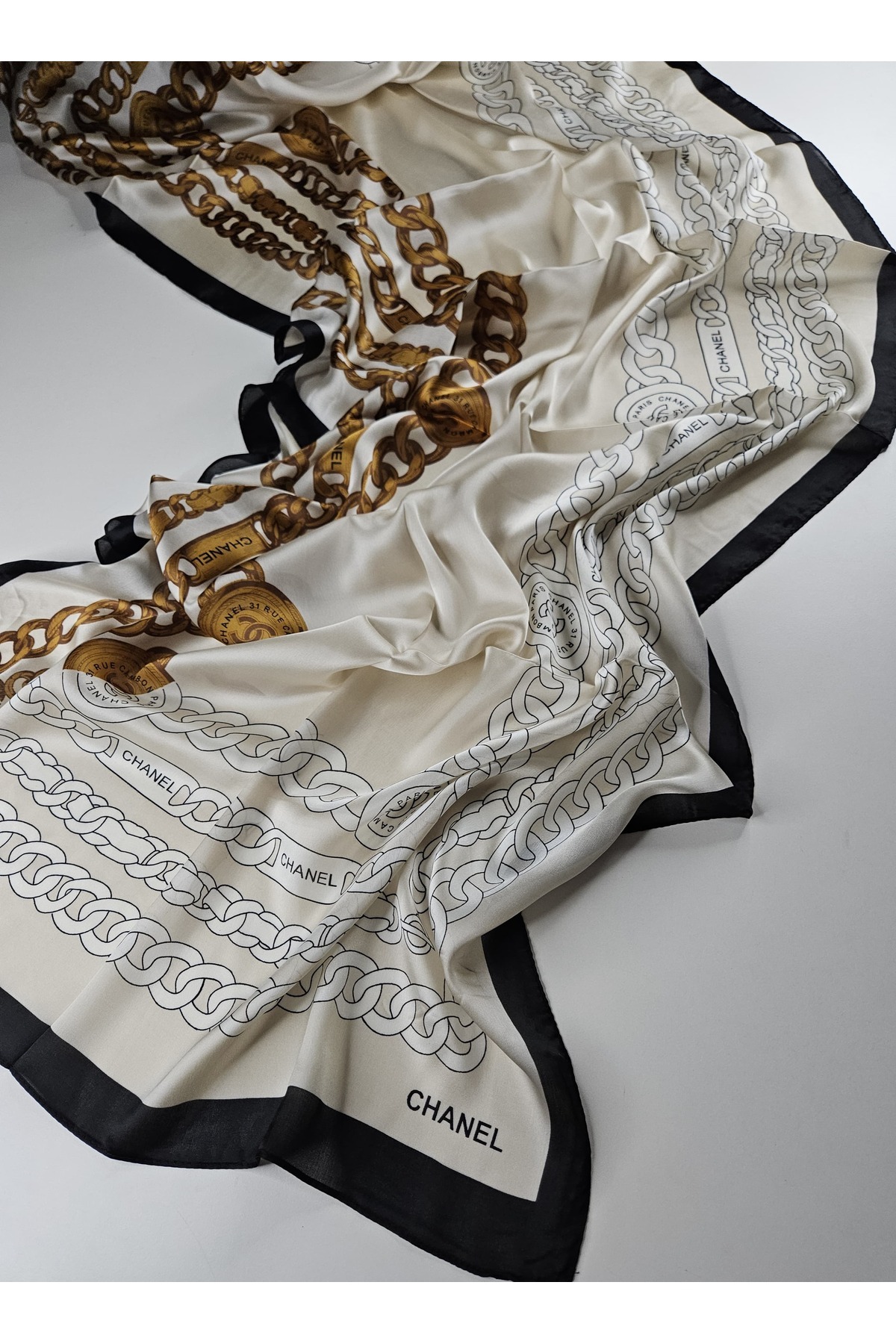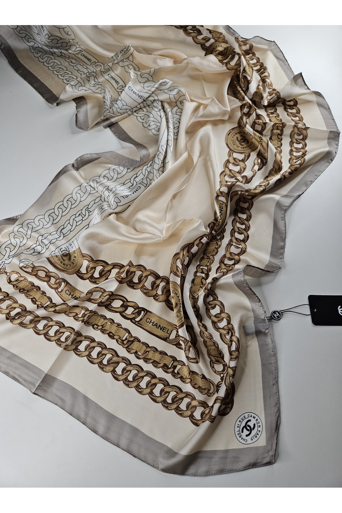 B Tema Zincir Desen Vual İpek Şal Silk Scarfs Shawl Hijab - Zarif desenli tasarımı ile her türlü kıyafetinize şıklık katar.