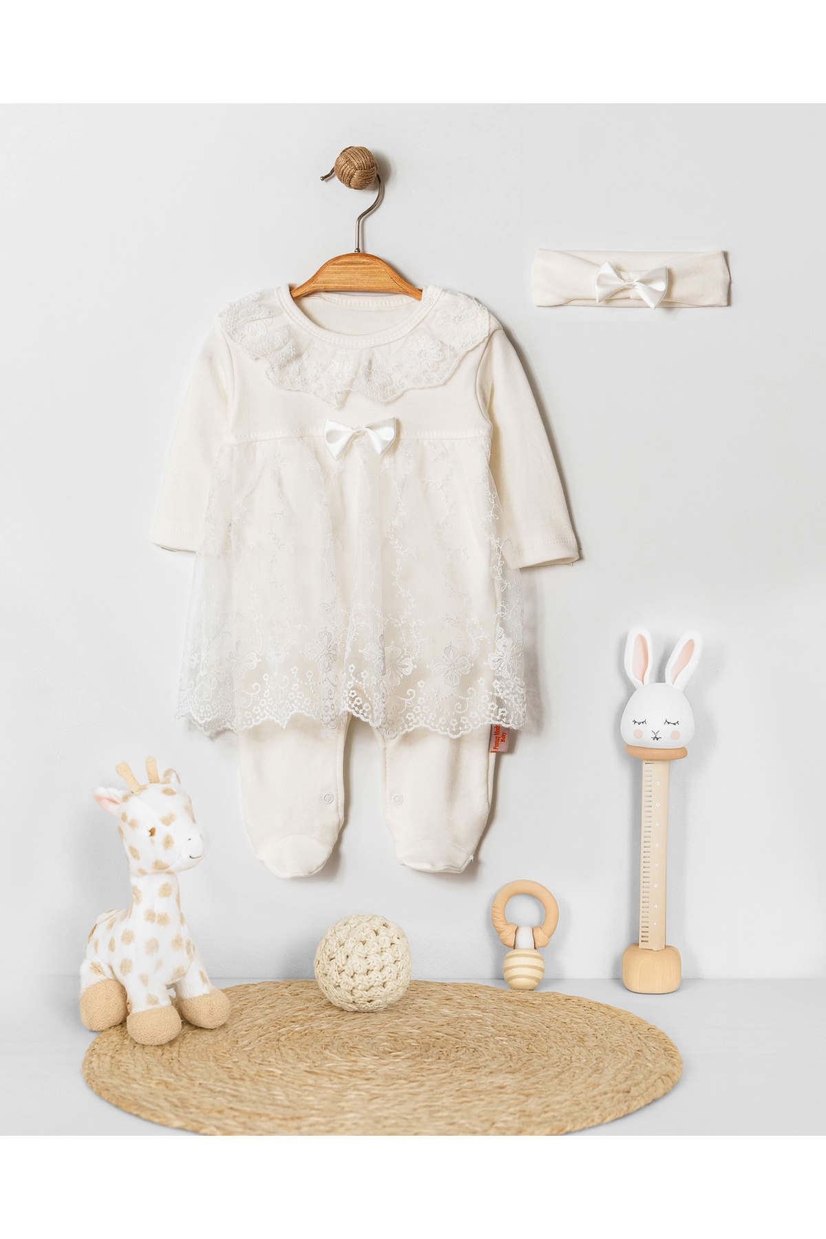• Paket içeriği: 1 adet tulum + 1 adet fiyonk detaylı saç bandı