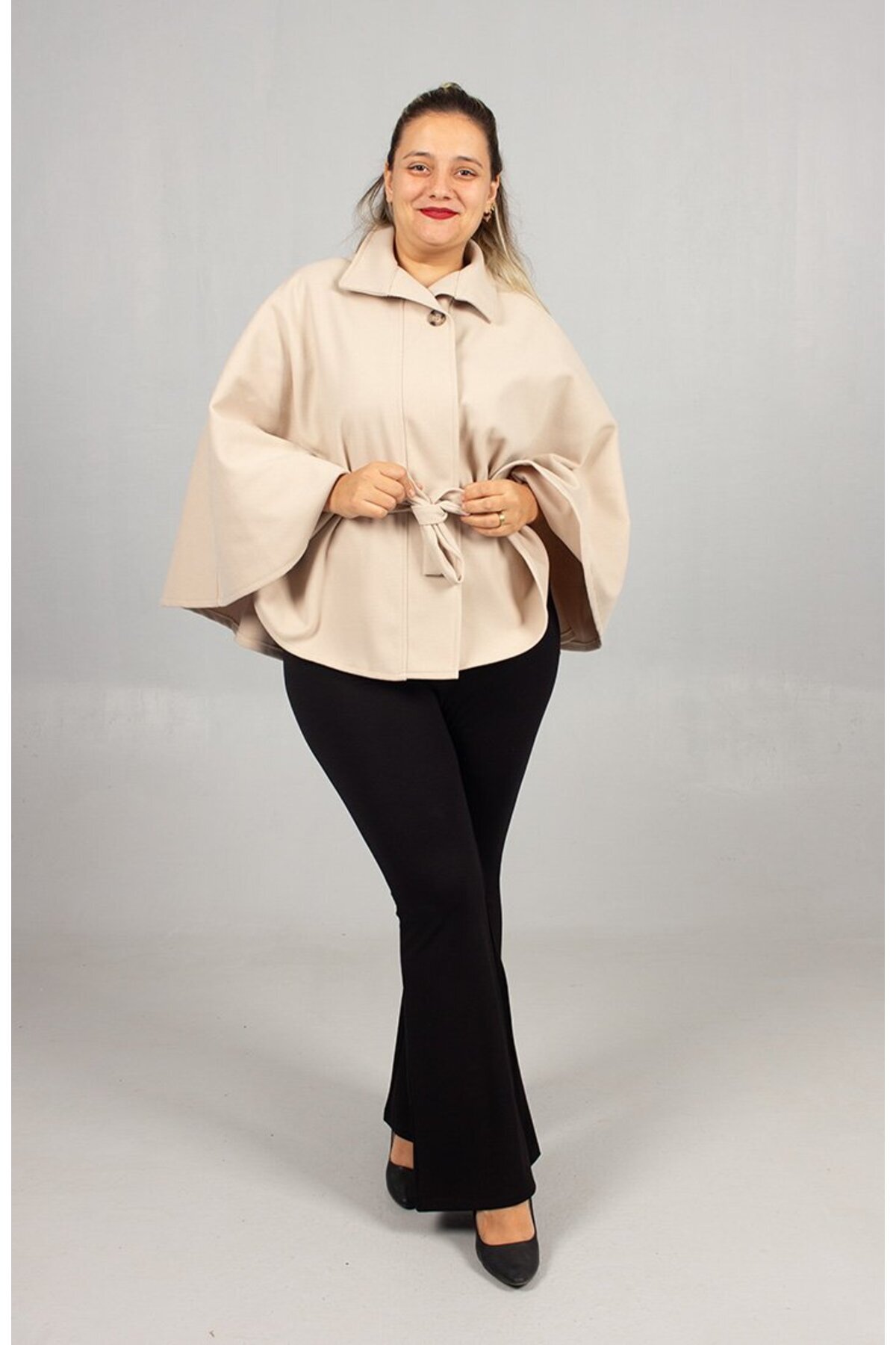 Kışın Aydınlığı: Krem Rengi Büyük Beden Kaşe Pelerin