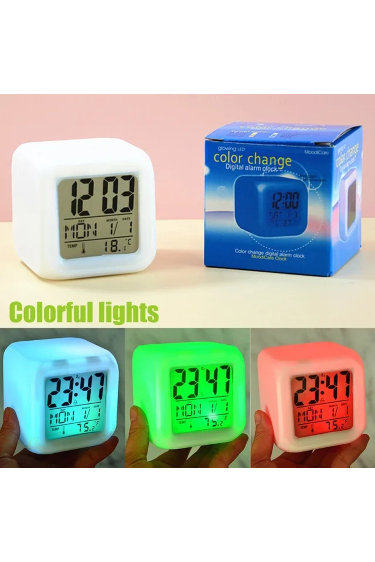 Led Dijital Renkli Masa Saati Alarm Termometre Tarih Masaüstü Saat (5224)