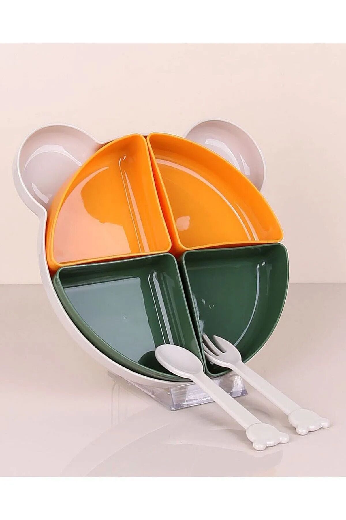 Tabldot Mama Tabağı Çıkarılabilir Kaseli -Tepsili 4 Bölmeli Çatal Kaşıklı Ayıcık Beslenm