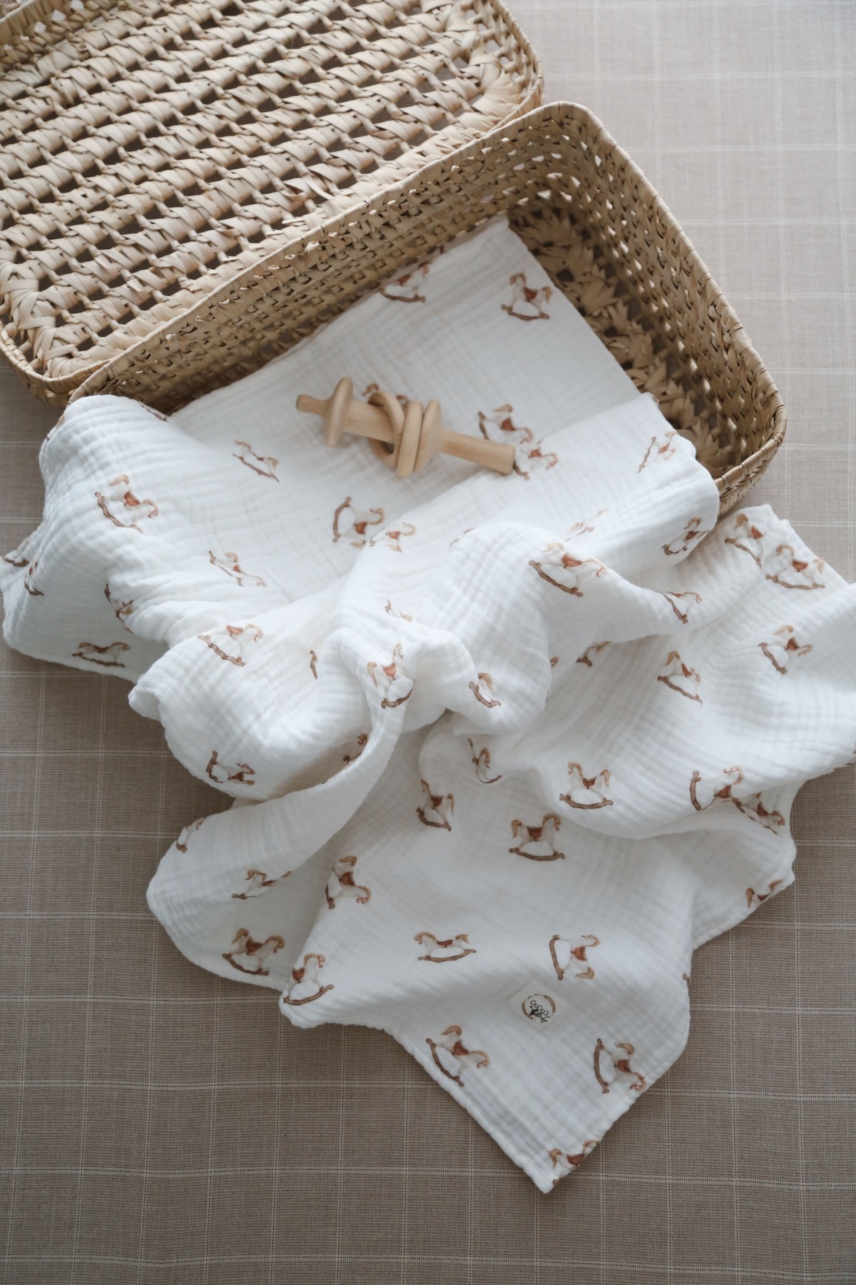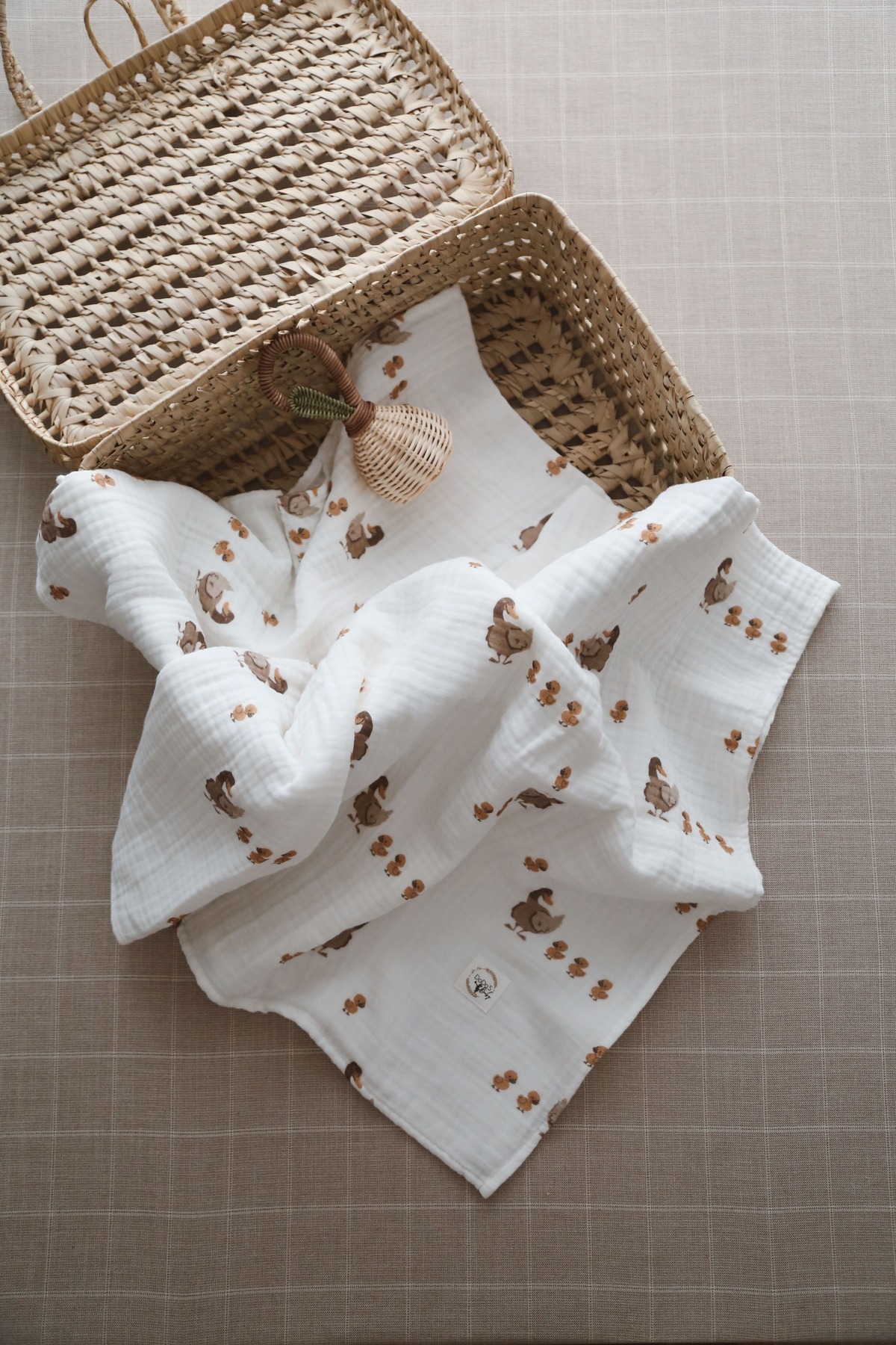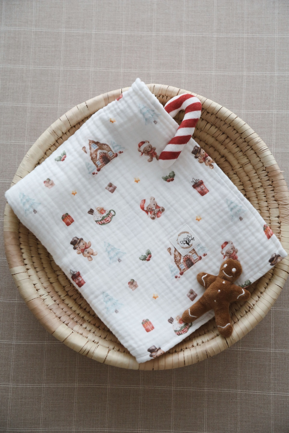 Dört katlı Kurabiye Adam desen özel yıkama yaptırılmış olup organik müslin kumaştan üretilmiştir.