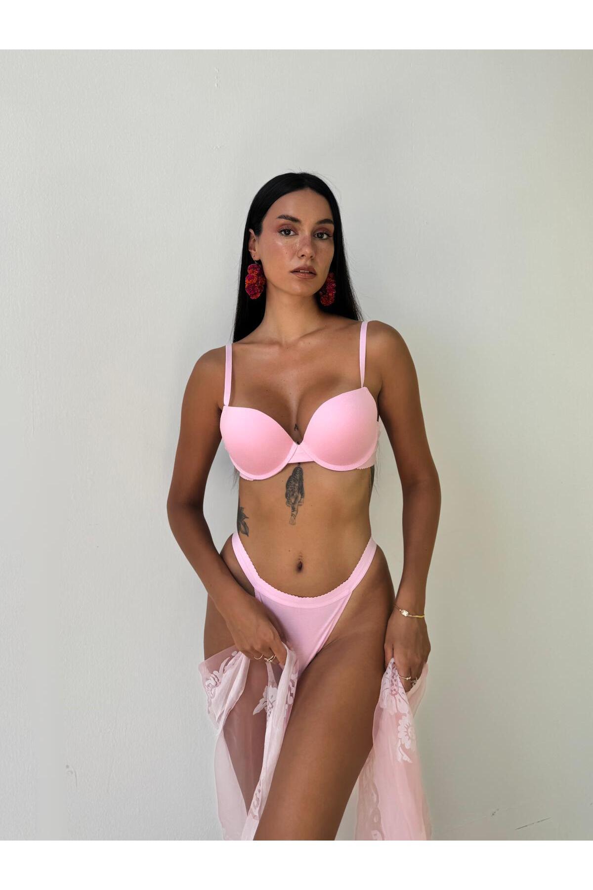 Bambu Pembe Nefes Alan Organik Balenli Dolgulu Sütyen Takımı