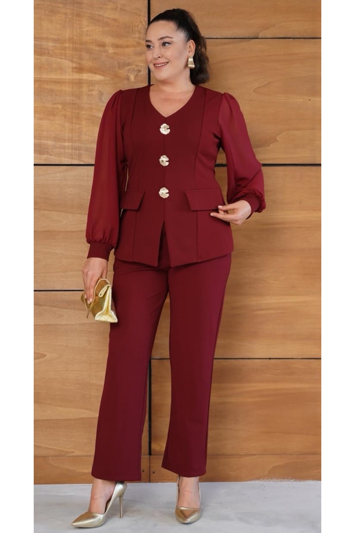 - Bluzlu pantolonlu takım, şık ve modern bir kombin seçeneği sunar.