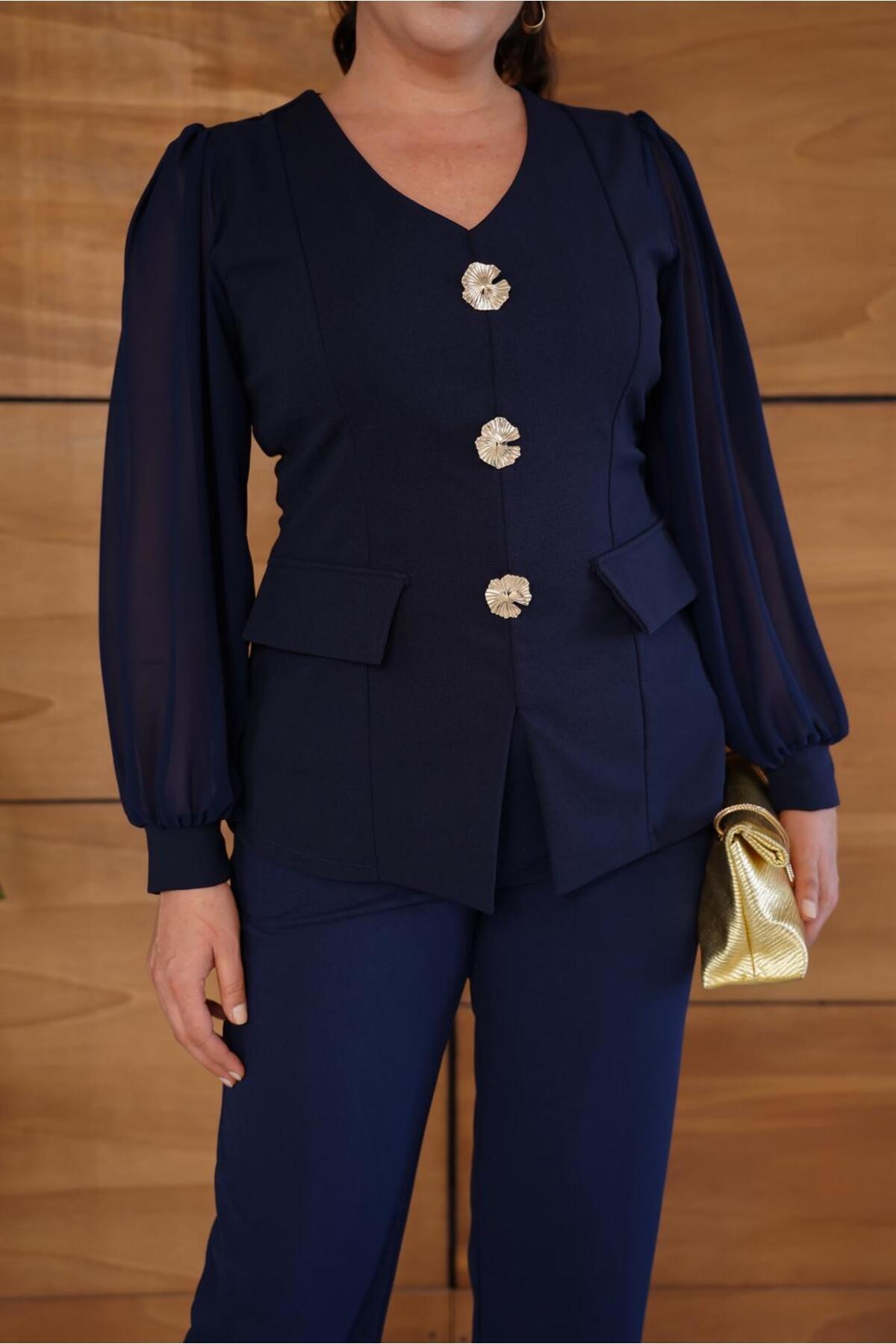 - Bluzlu pantolonlu takım, şık ve modern bir kombin seçeneği sunar.