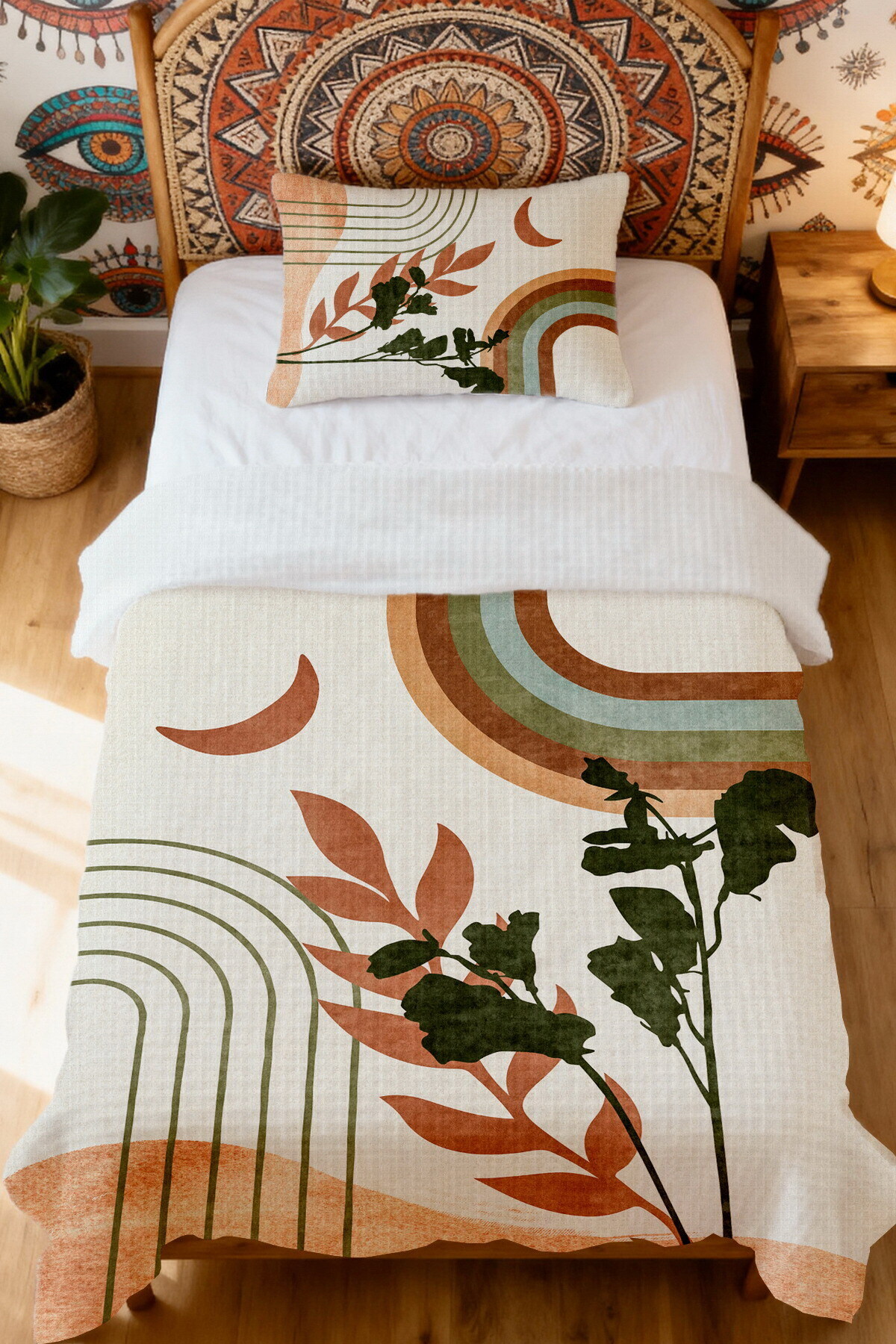 %100 Pamuk Bohem Pastel Renkli Gökkuşağı ve Ay Desenli Tek Kişilik Pike Seti