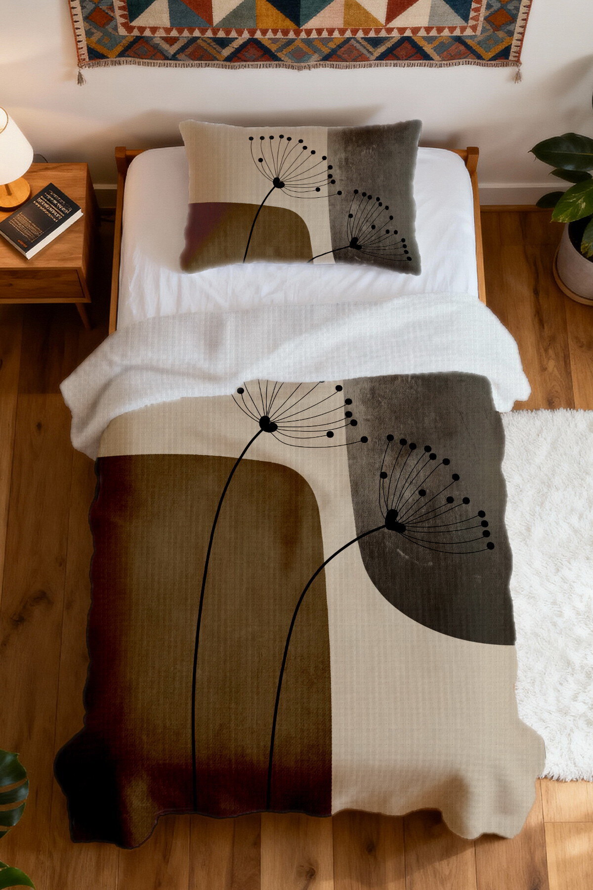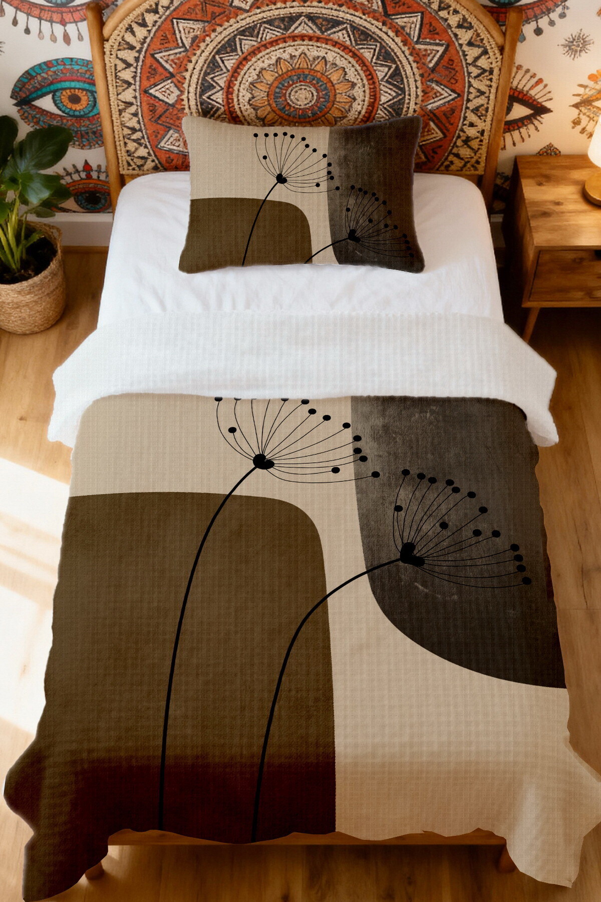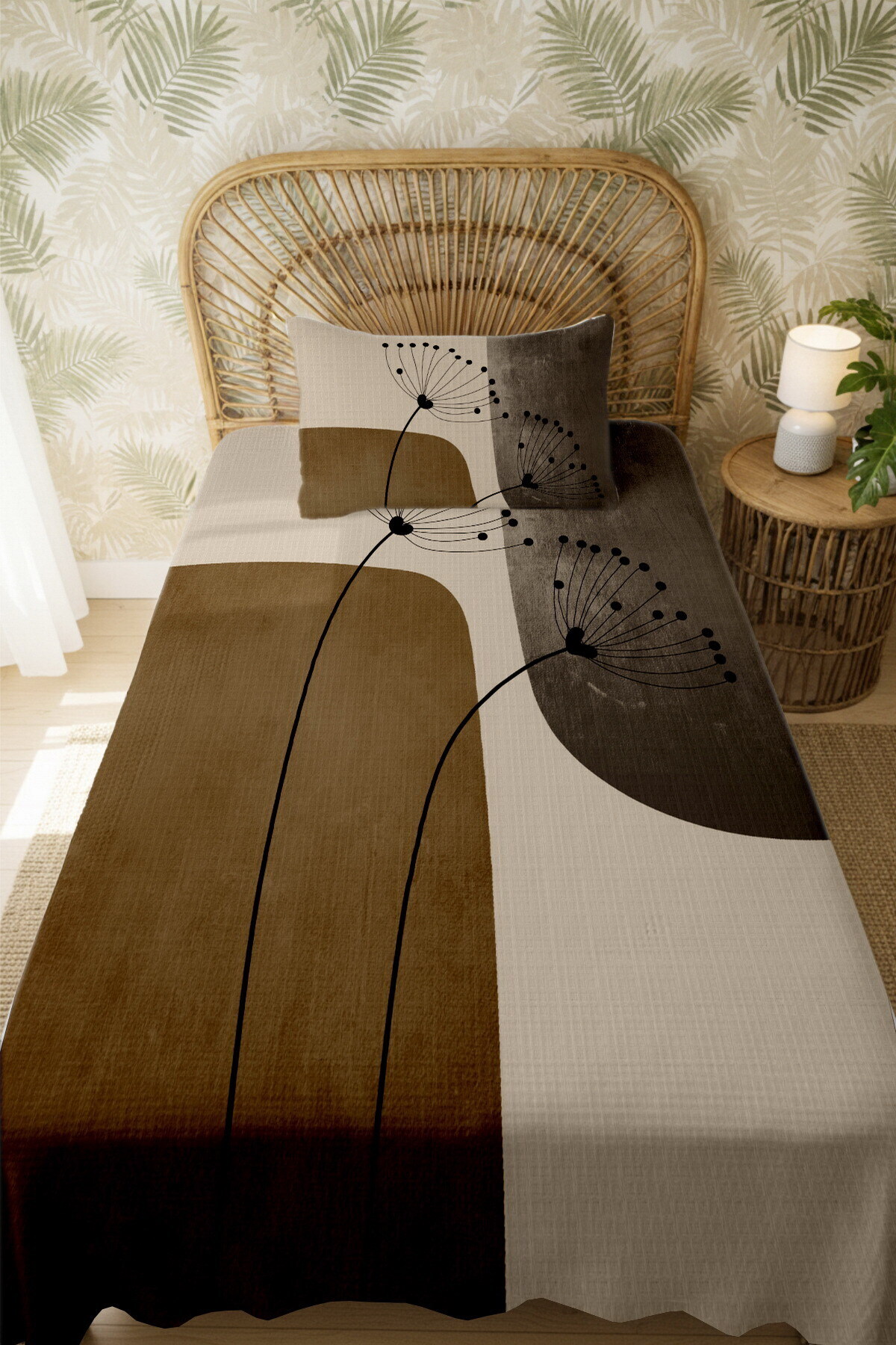 %100 Pamuk Kahverengi Karahindibağlar Desenli Tek Kişilik Pike Seti