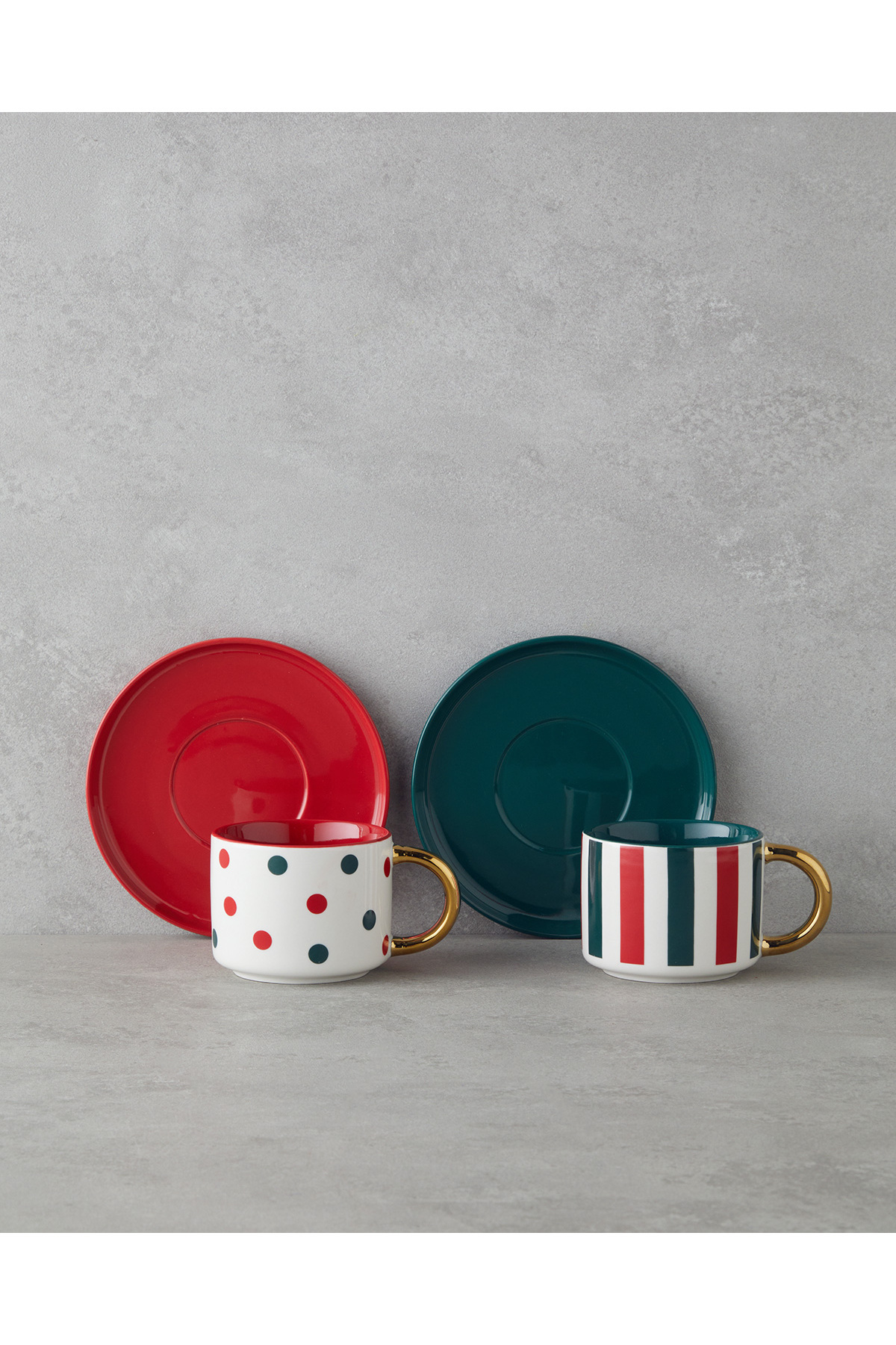 Holiday Cheer New Bone China 4 Parça 2 Kişilik Çay Fincanı Takımı 200 ml Kırmızı-Yeşil-Gold