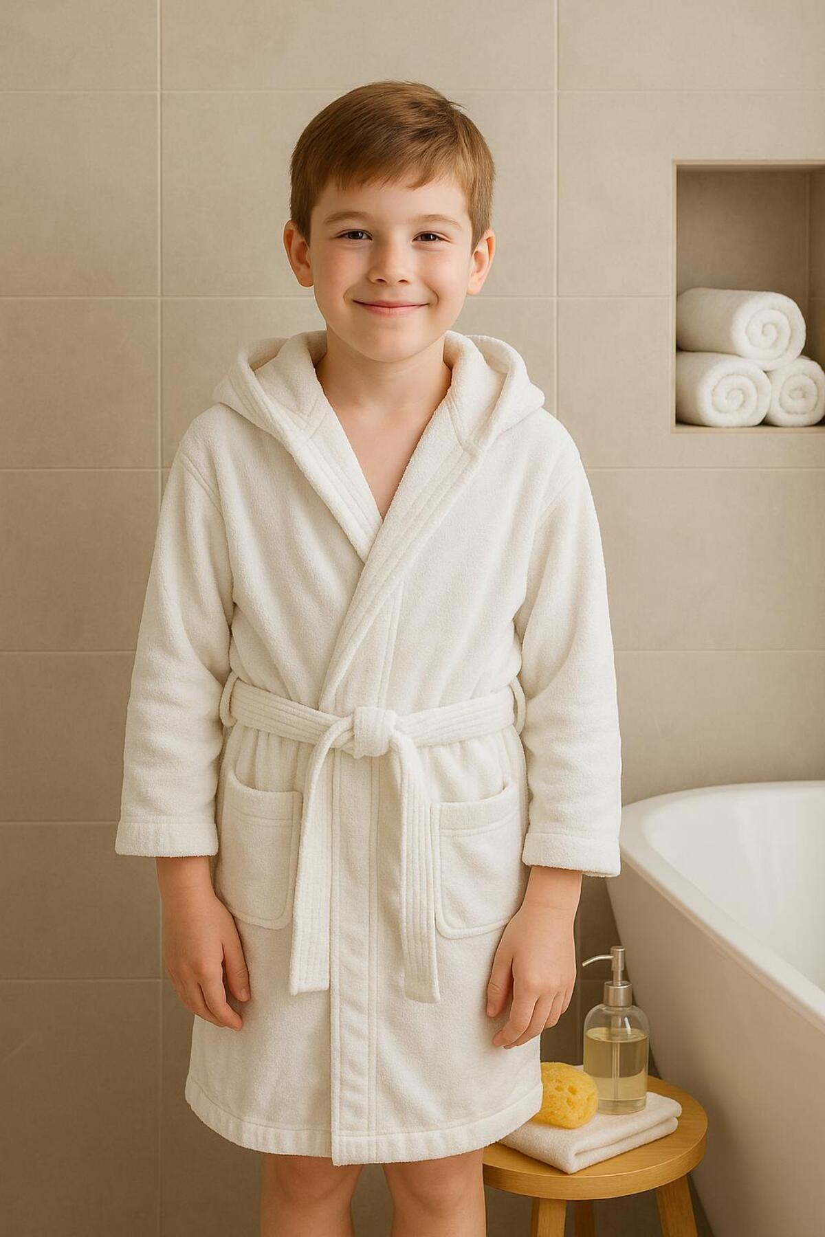 - Tek parça bornoz olarak sunulur
