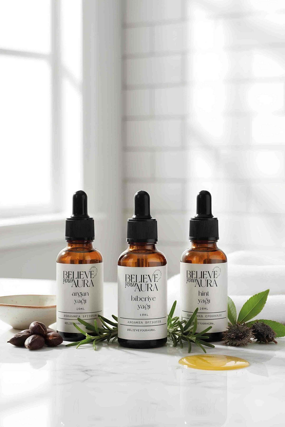 Cilt ve Saç Bakım Seti - %100 Saf ve Doğal Hint Argan Biberiye Yağı Cilt ve Saç Bakım Seti - 3x10 ml