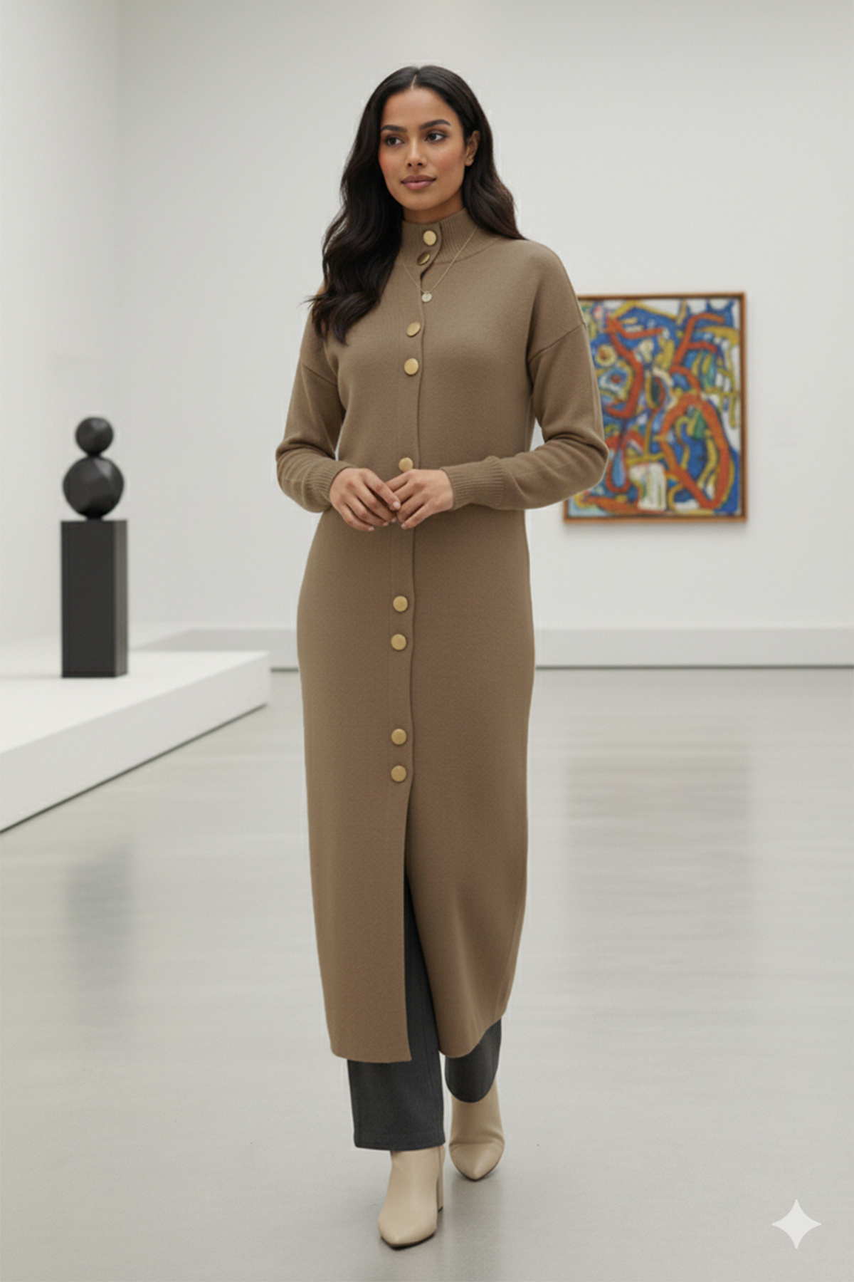 Mankenin üzerindeki ürün: Standart Bedendir.