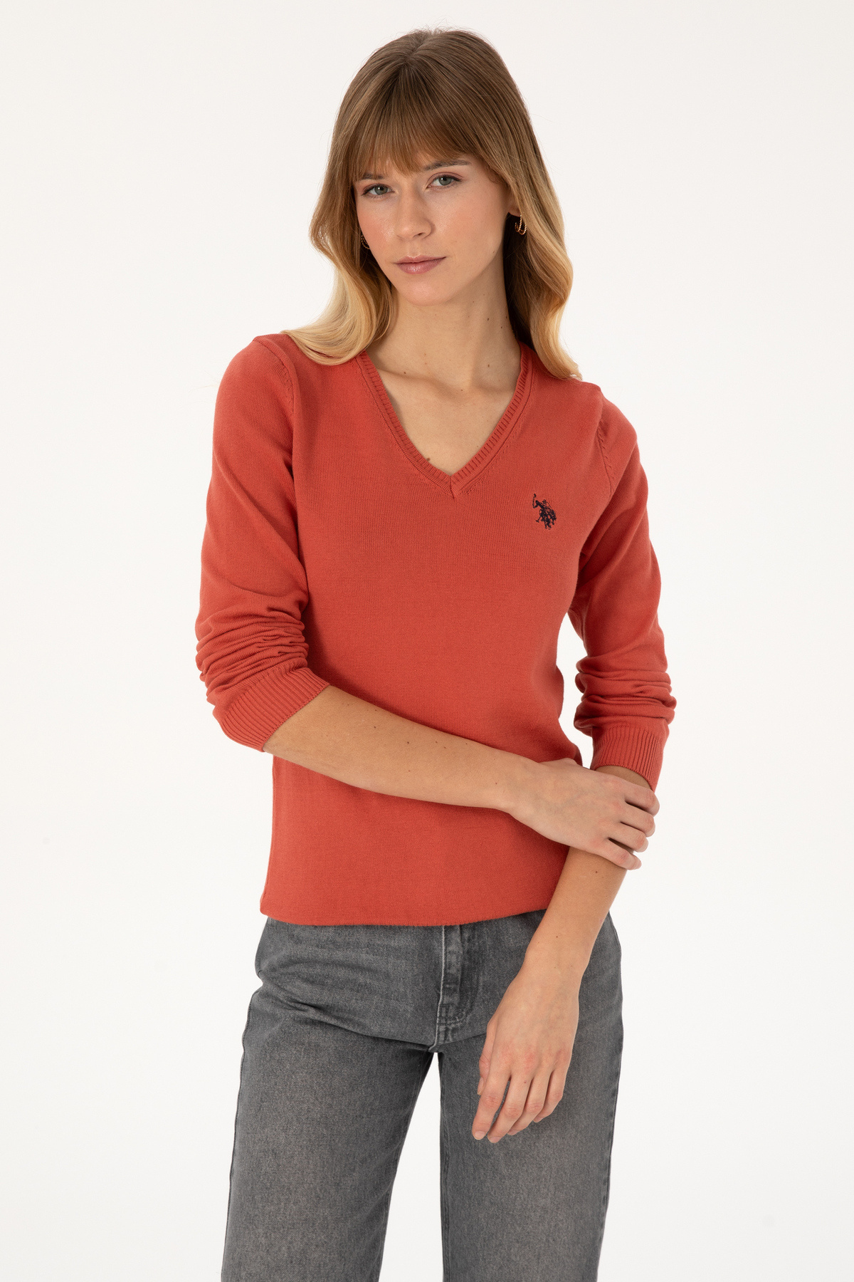 Kadın Gül Kurusu V Yaka Basic Kazak 50313590-VR026