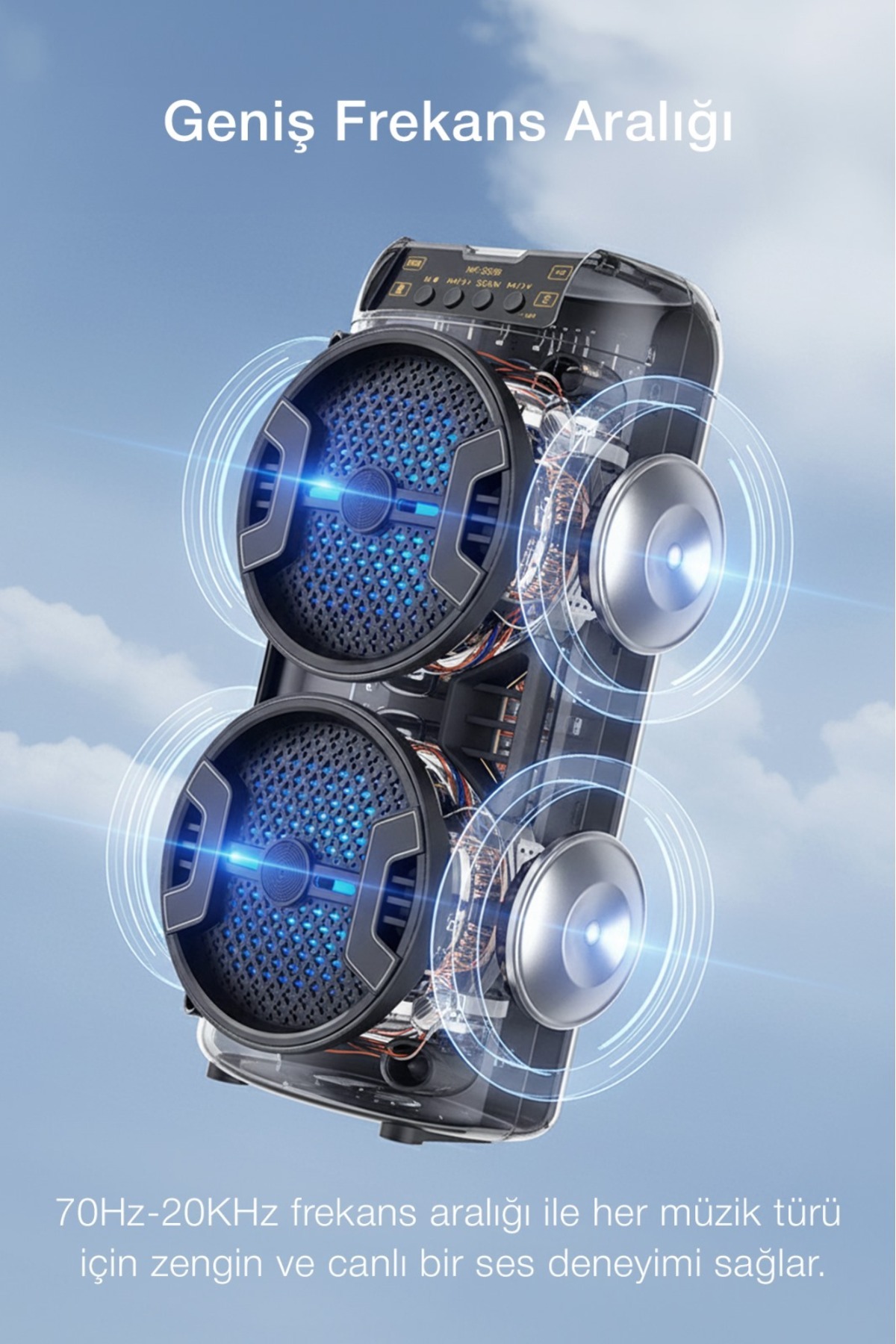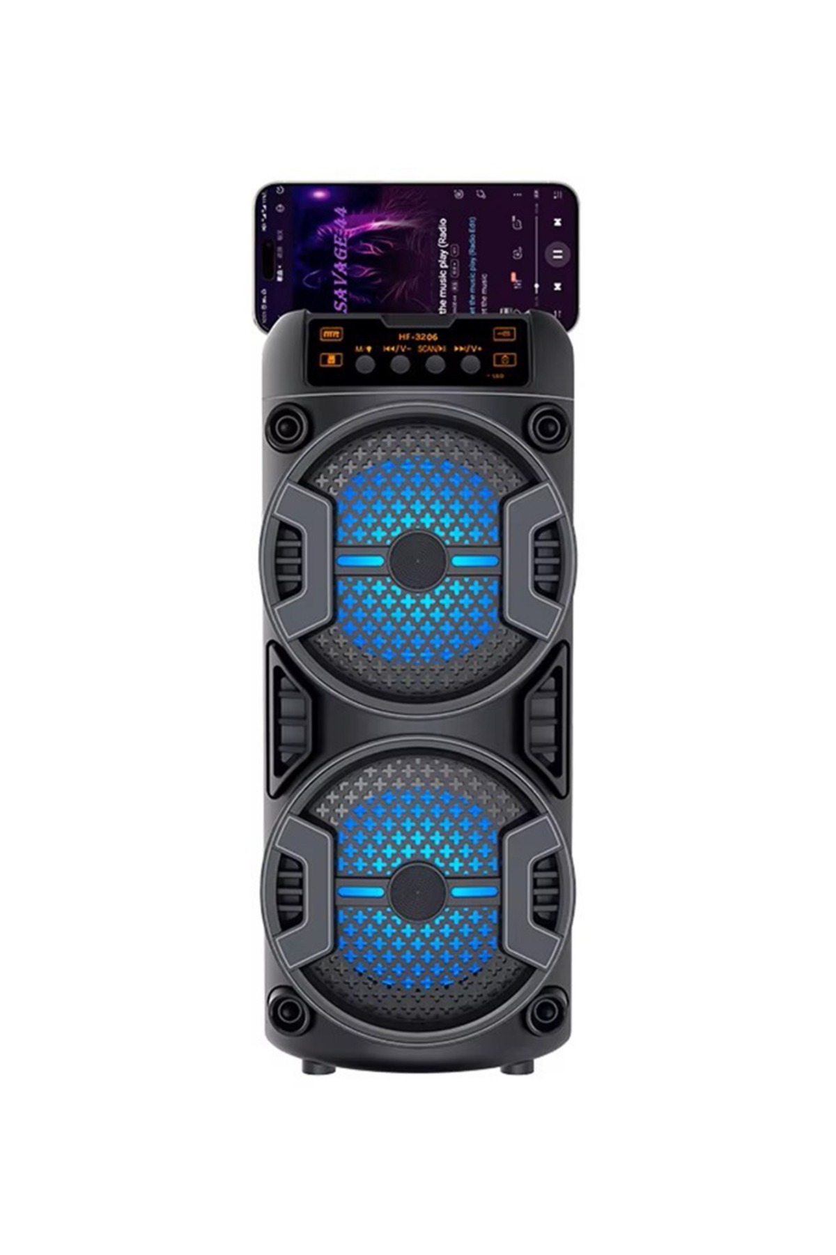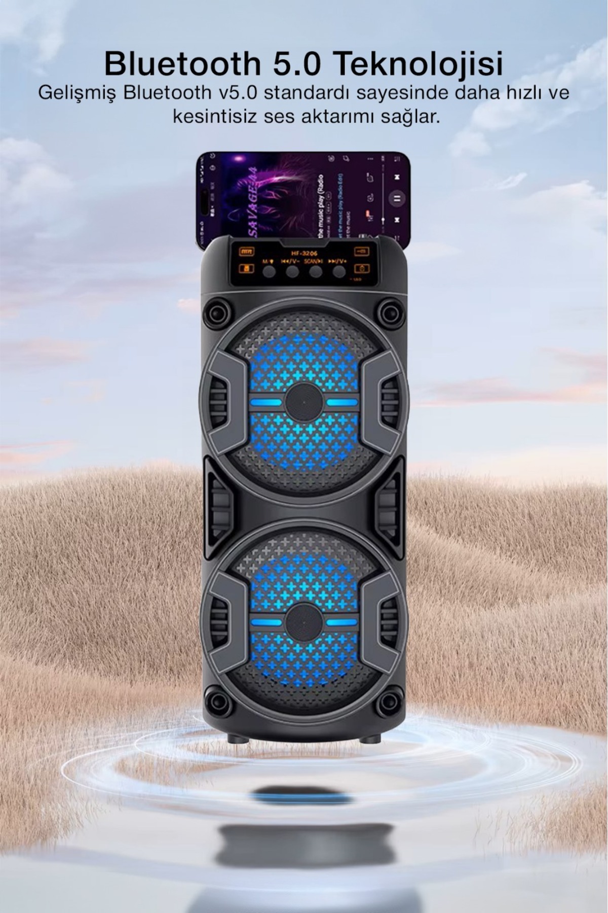 Bluetooth LED Işıklı Taşınabilir Hoparlör – Çift 3” Subwoofer, 20W Güçlü Bass, FM/USB/TF/AUX