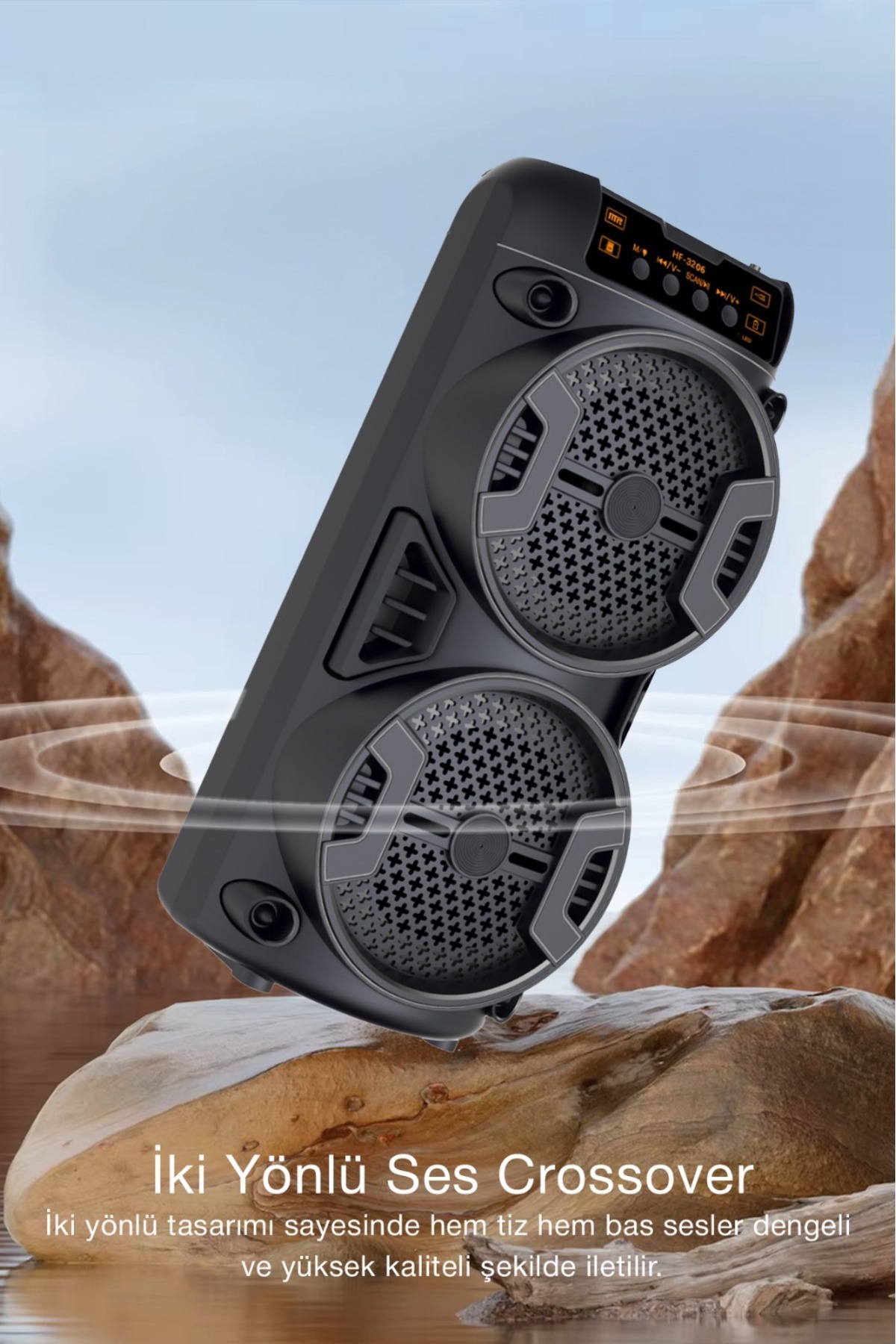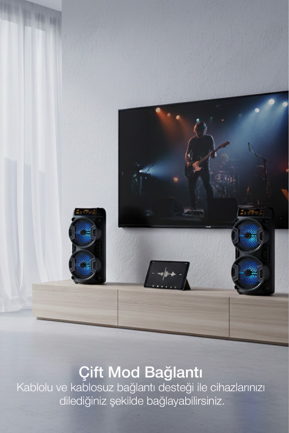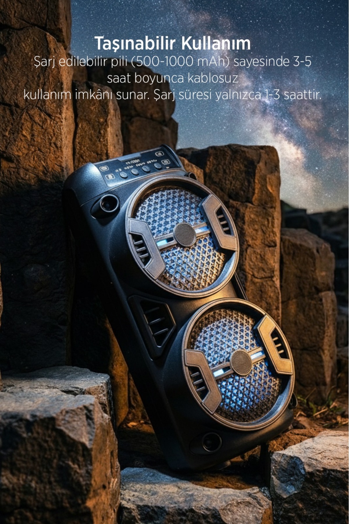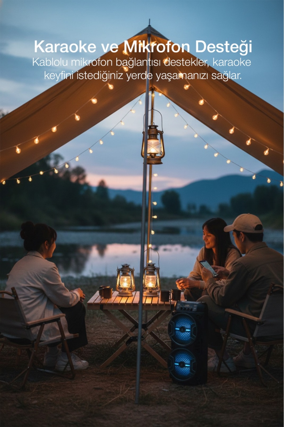 Bluetooth LED Işıklı Taşınabilir Hoparlör – Çift 3” Subwoofer, 20W Güçlü Bass, FM/USB/TF/AUX