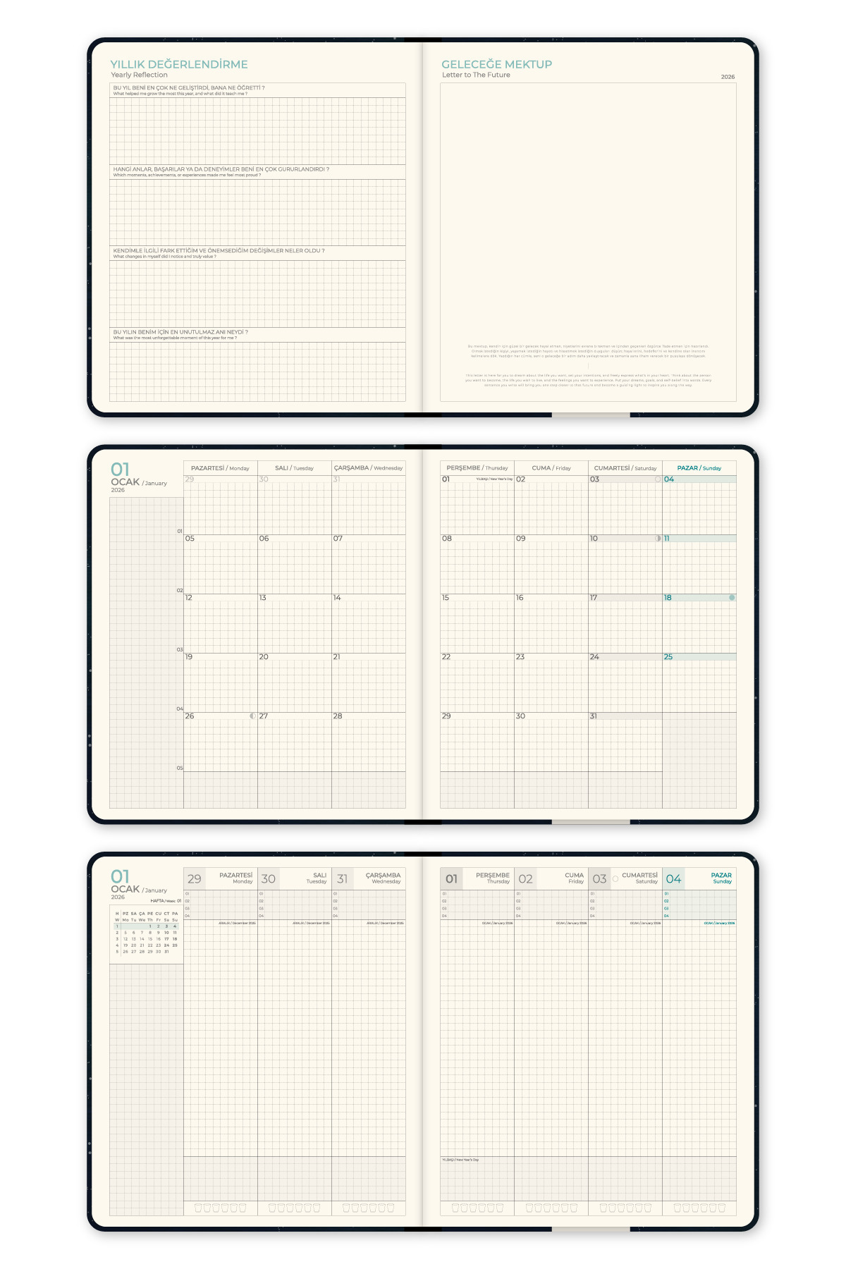 2026 Dikey Haftalık Ajanda – 12 Aylık Sert Kapak (18x20 cm)