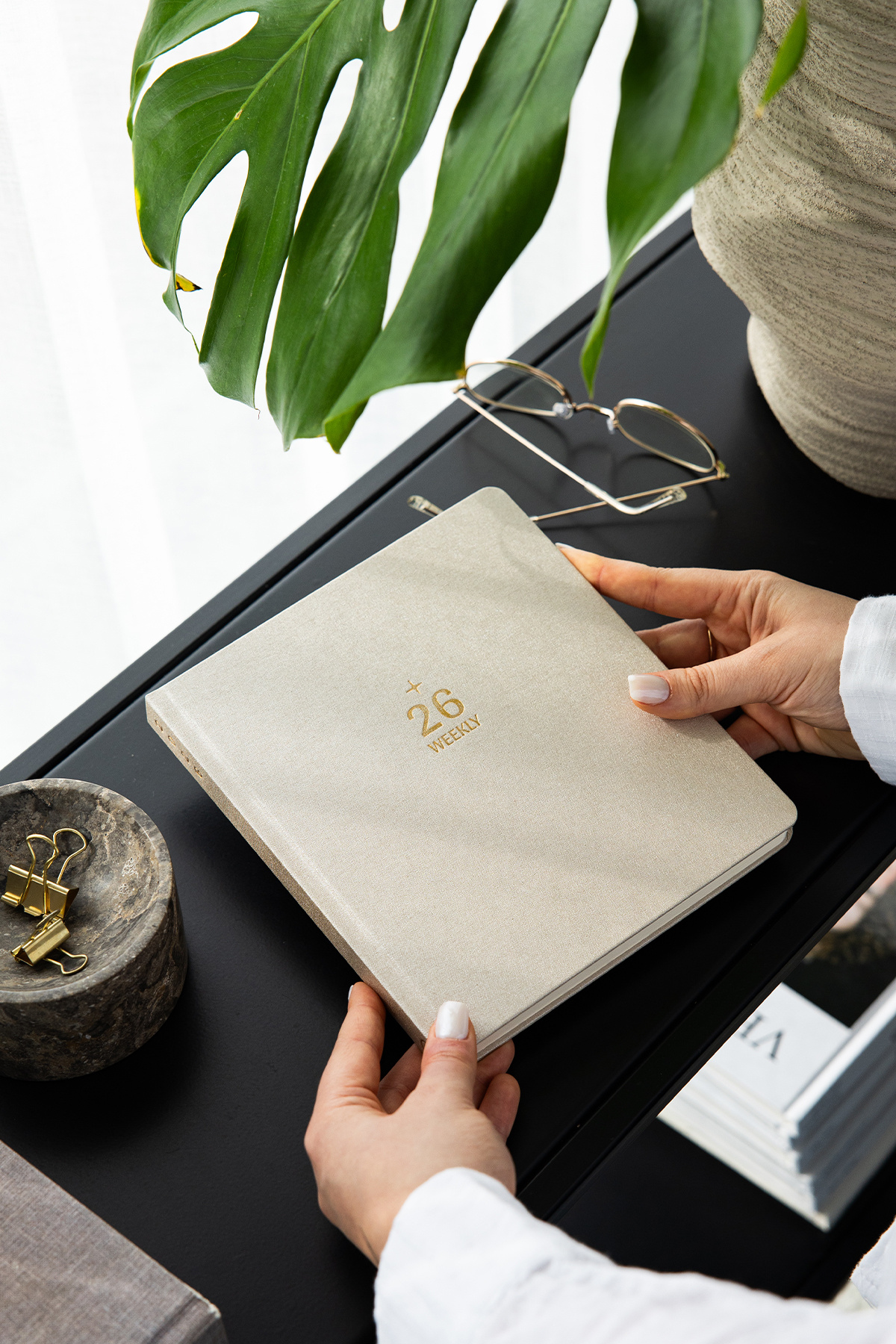 2026 Dikey Haftalık Ajanda 12 Aylık Kir ve Suya Dayanıklı Premium Keten Kapaklı 18x20 cm - Bej