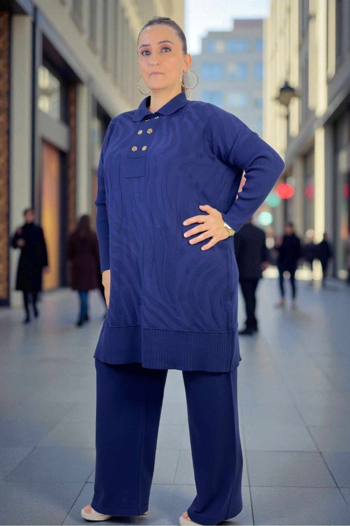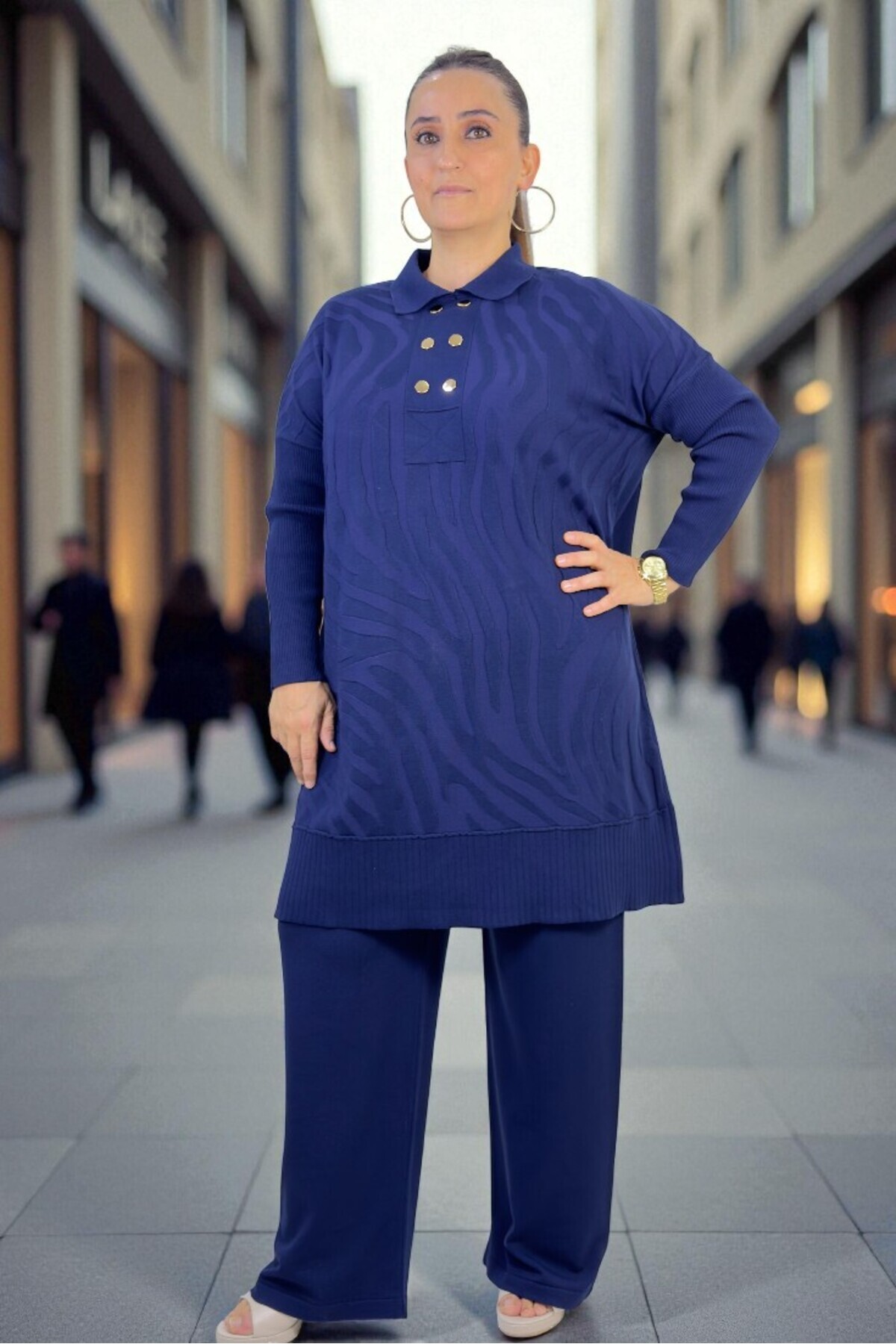 GOLD DÜĞME DETAY POLO YAKA TUNİK BELİ LASTİKLİ PANTOLON BÜYÜK BEDEN MERSERİZE TAKIM
