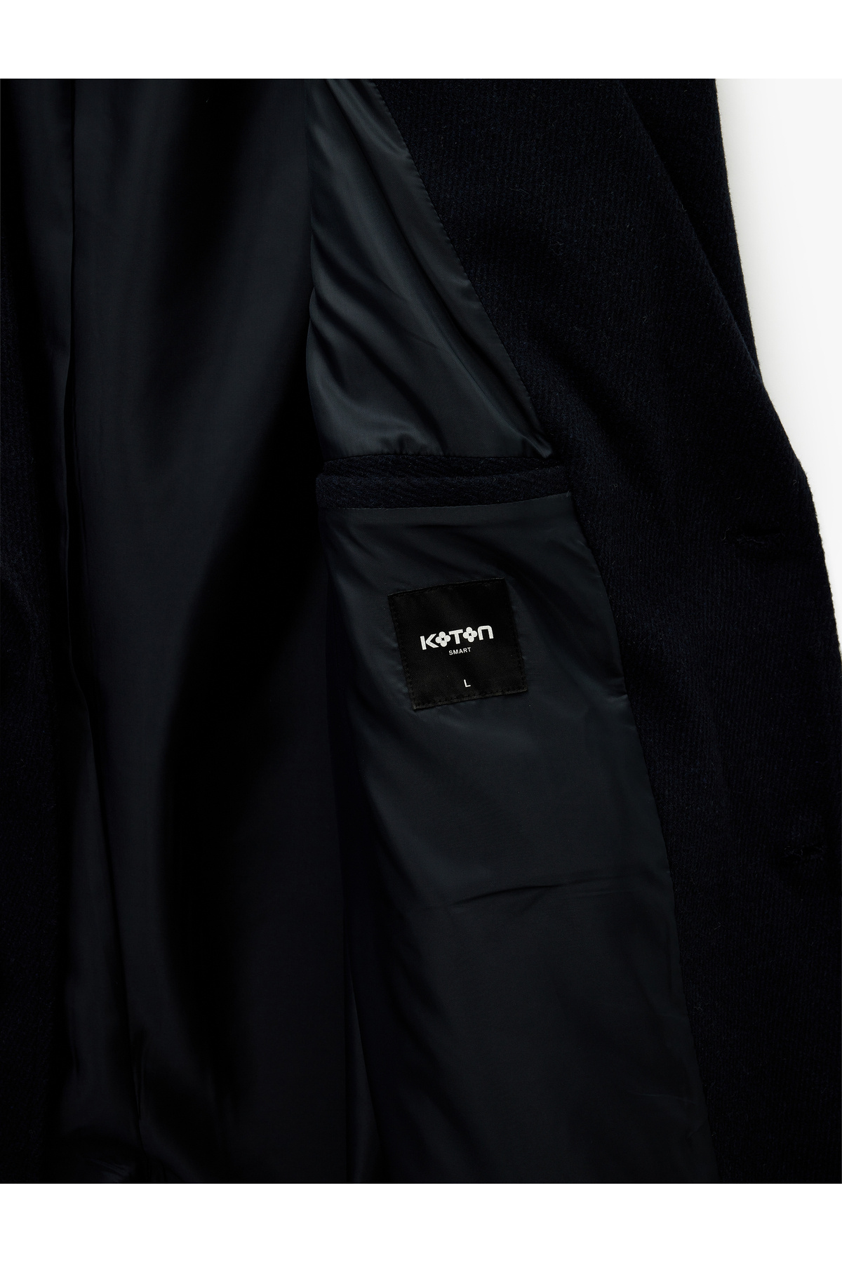 Düğmeli Cepli Kruvaze Yaka Kaşe Kaban
