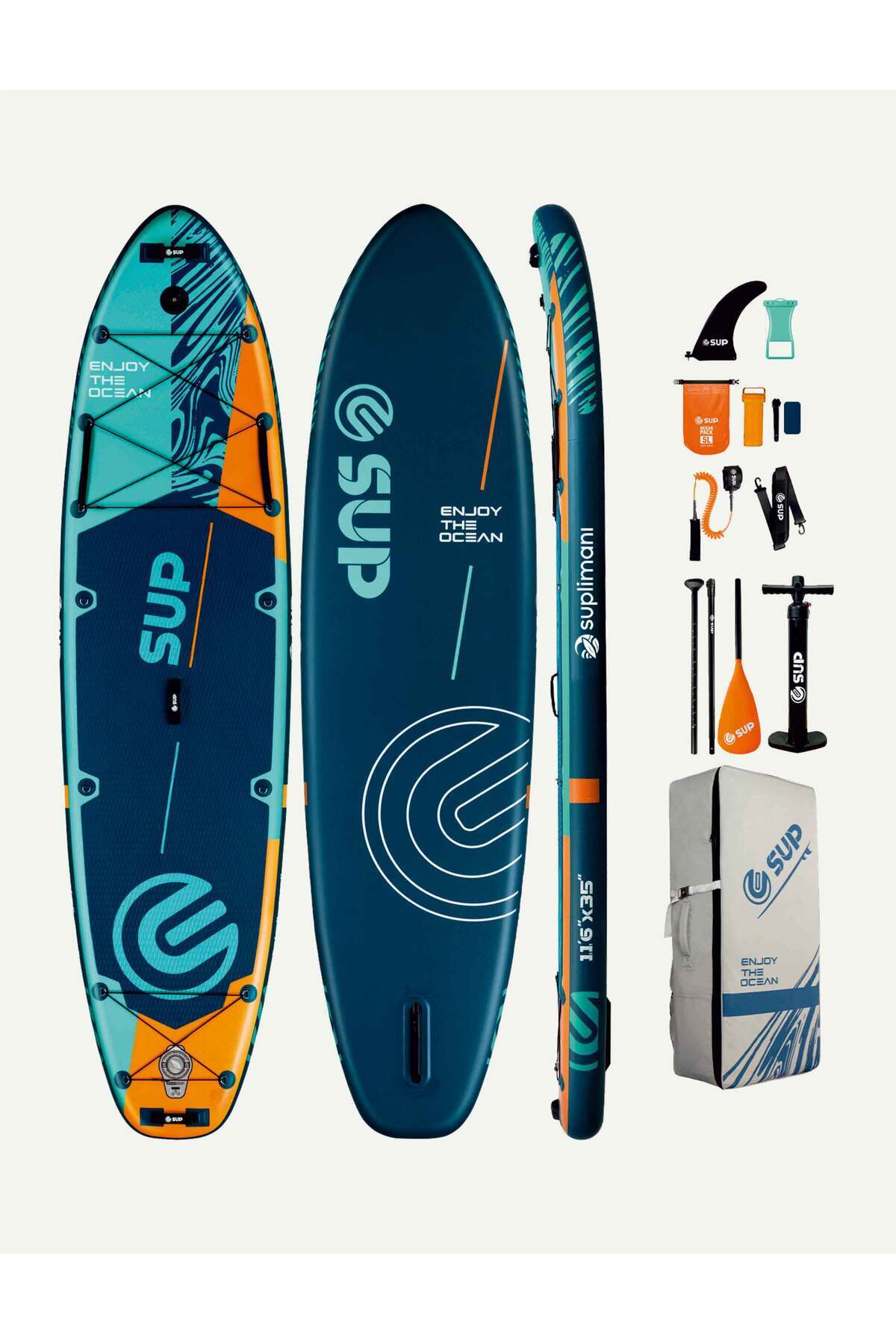 Supboard Paddle Board Şişme Sörf Tahtası Tam Set Sup Board Aruba Blue 350x89x15