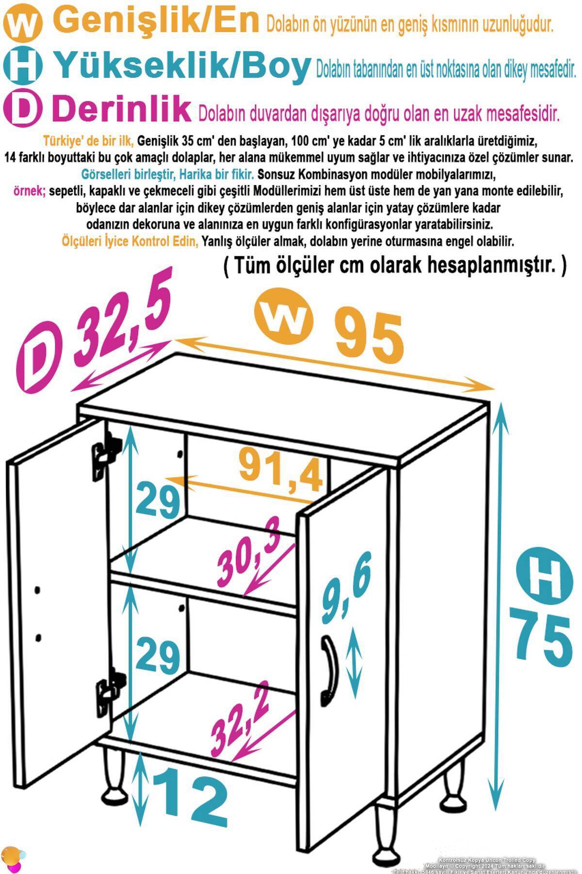 SÖKE Kapaklı 1 Raf, Ayaklı, Çok Amaçlı Banyo Dolabı (14 farklı Genişlik Seçeneği)